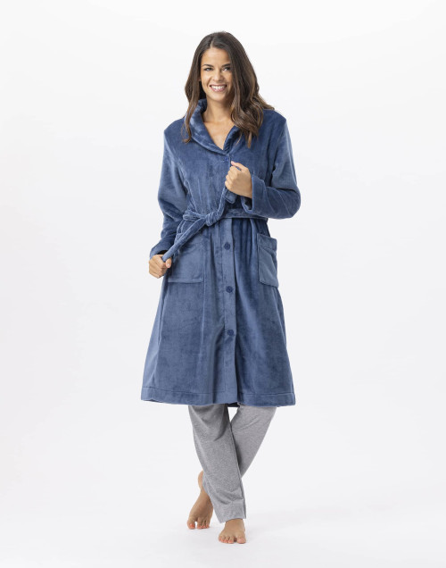 Always looking for newness, Lingerie le Chat offers for its collection of Fall-winter dressing gowns an ever more effective range of materials against the cold. We find polar fleece for dressing gowns that are always softer and warmer. Or cashmere, which has the particularity of keeping body heat between its meshes. Finally, cotton jersey, interlock and other tight knit come into play in the making of warm women's dressing gowns from Lingerie le Chat. The thermal properties of these fabrics are ideal for protecting you from the cold on winter nights. Opting for this garment is also a good way to stay at home during the day without having to turn on the heating.