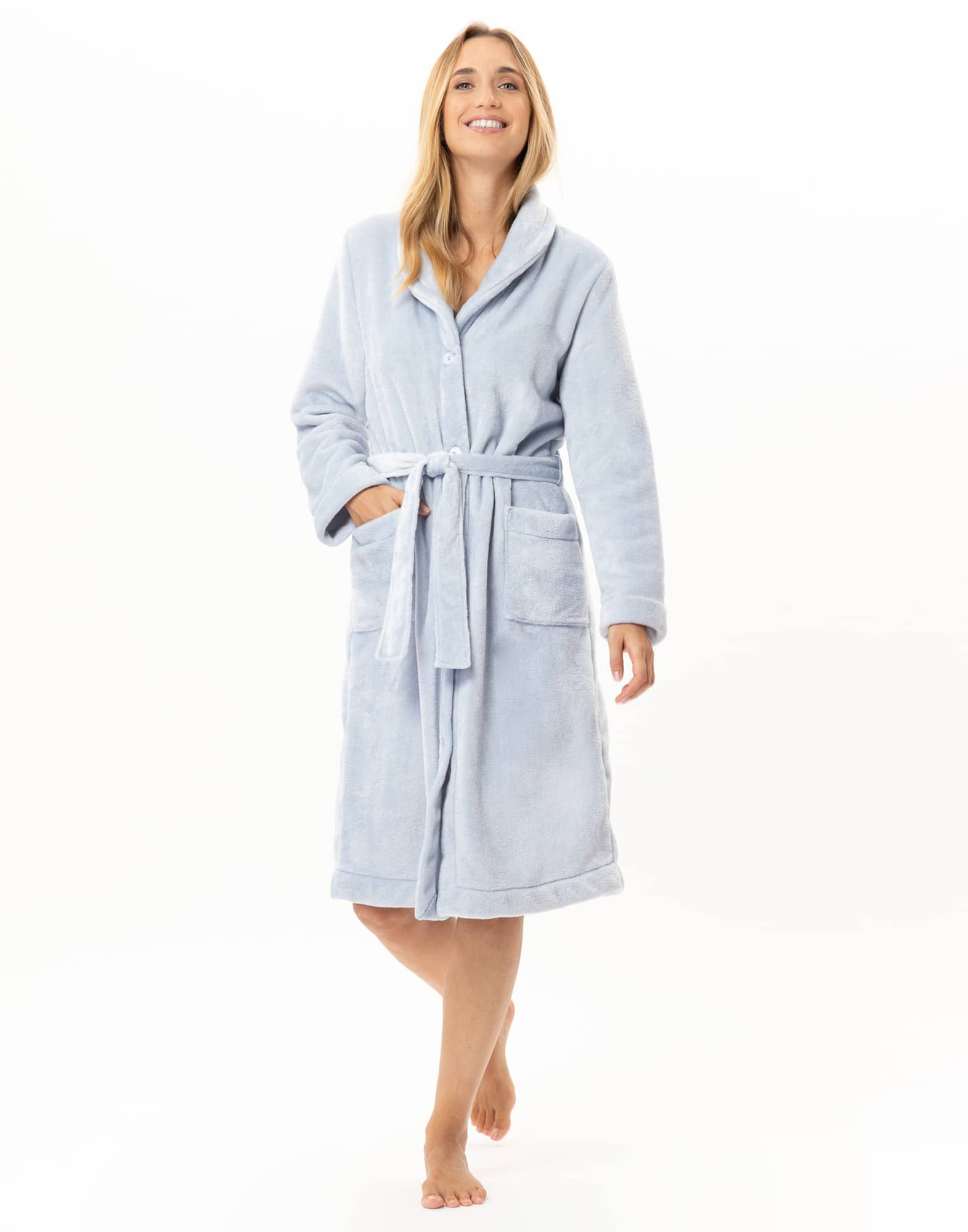 Plush flannel button-down dressing gown ESSENTIEL Sky