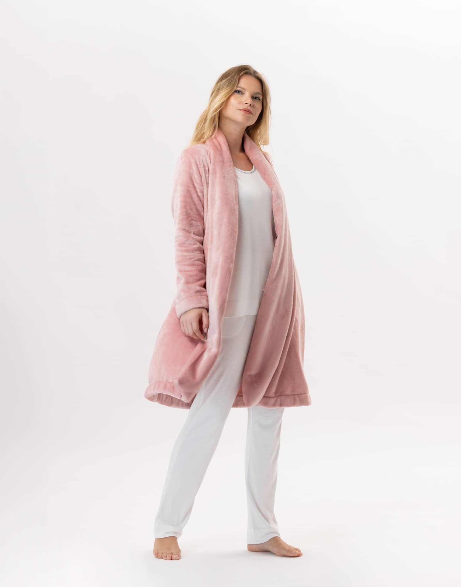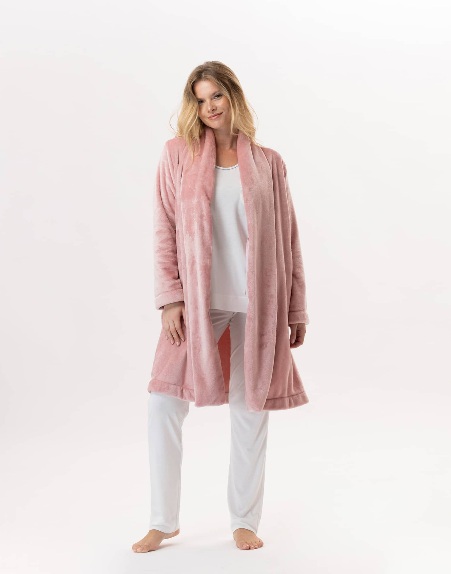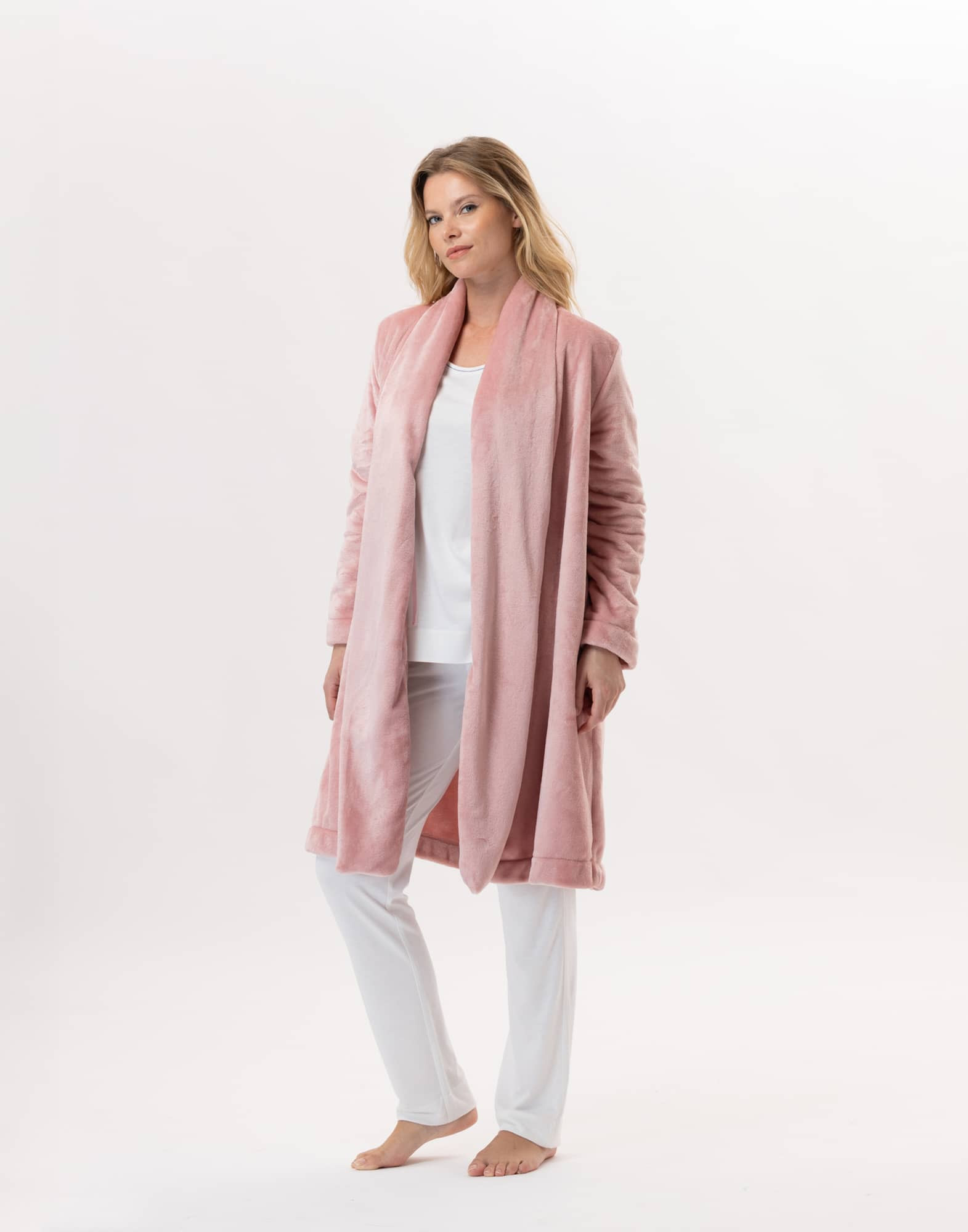 With its generous shawl collar and relaxed fit, the long Essentiel jacket is designed to help you slow down. From crisp mornings to relaxing evenings, it turns every moment at home into a cocoon of absolute comfort.