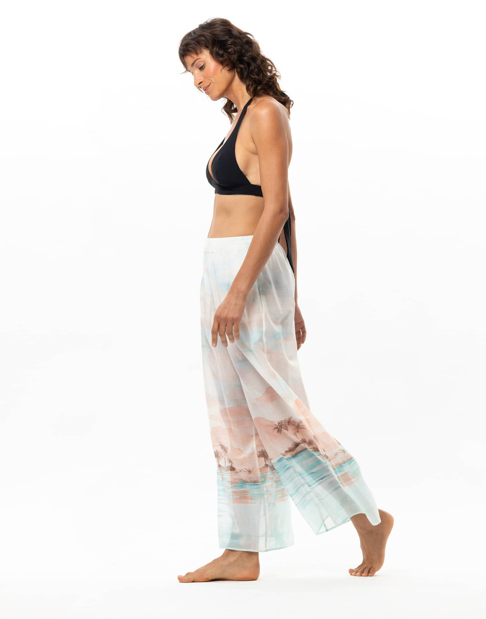 Sunset joins Le Jardin Aquatique, our beachwear capsule collection that offers a sunny wardrobe imbued with freedom. Lightweight and flowing, the Sunset trousers are easy to wear all summer long.