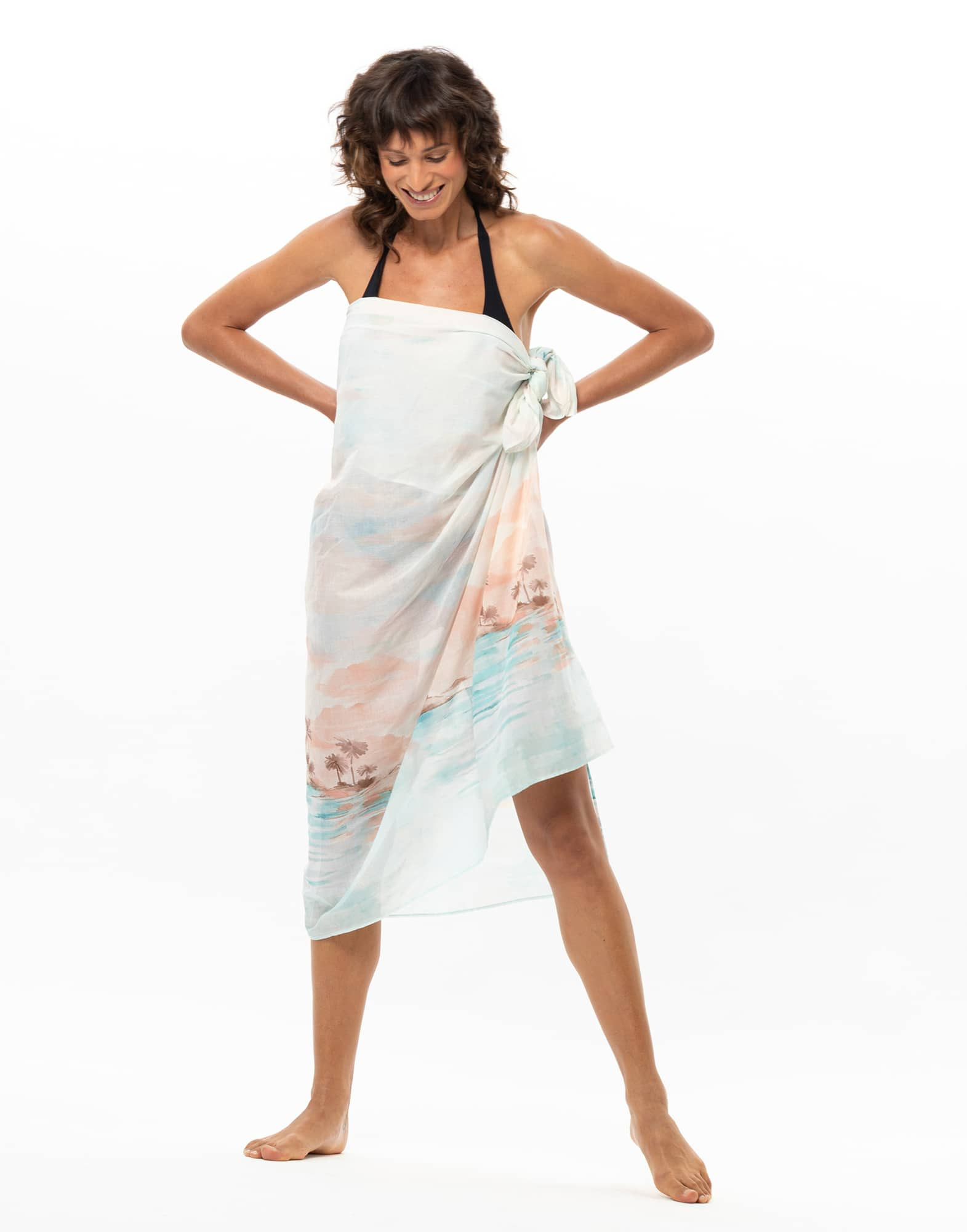 The Sunset sarong can be adjusted to suit your preferences. We recommend choosing your usual size. If you are unsure between two sizes, consult our size guide to find the right one for you.