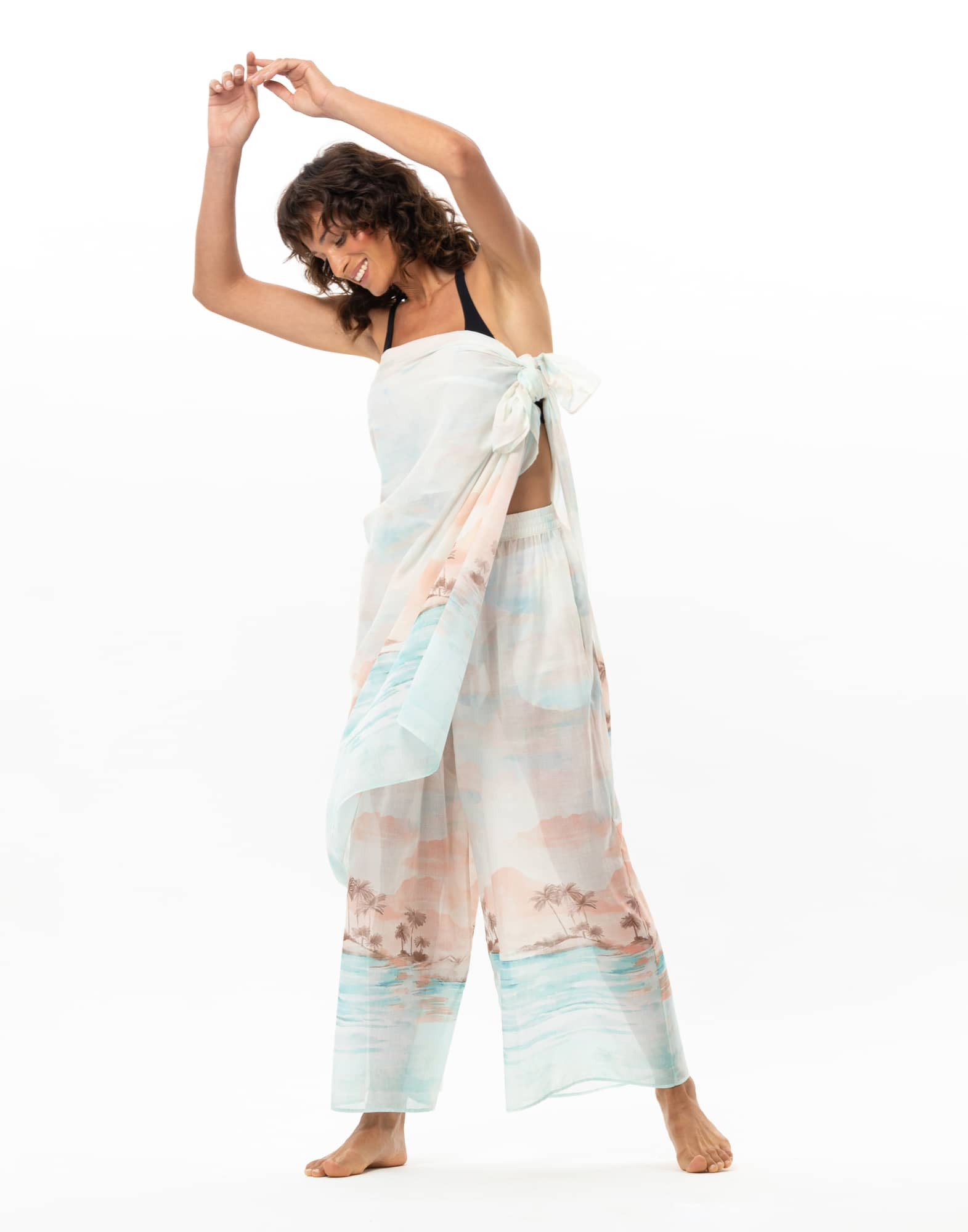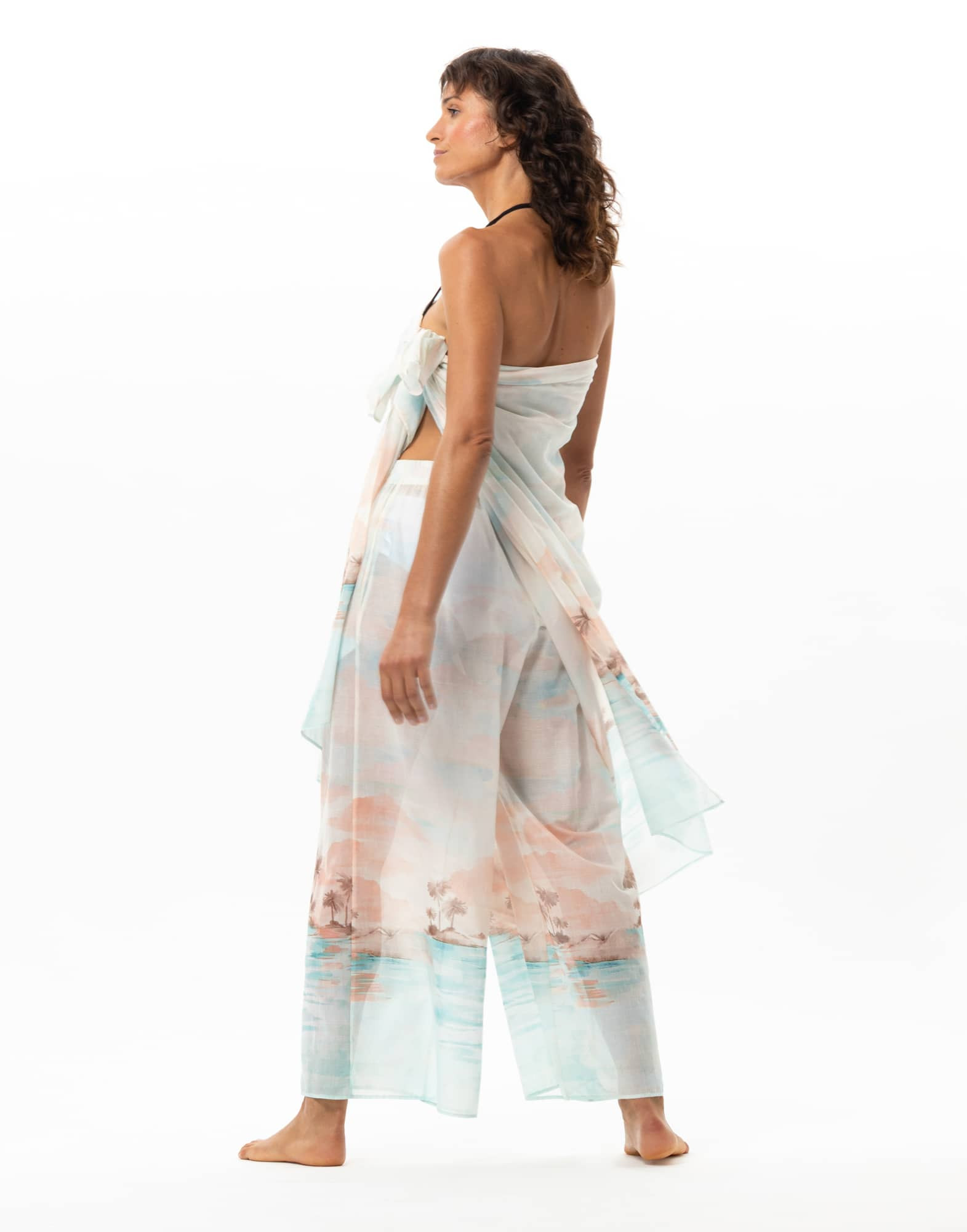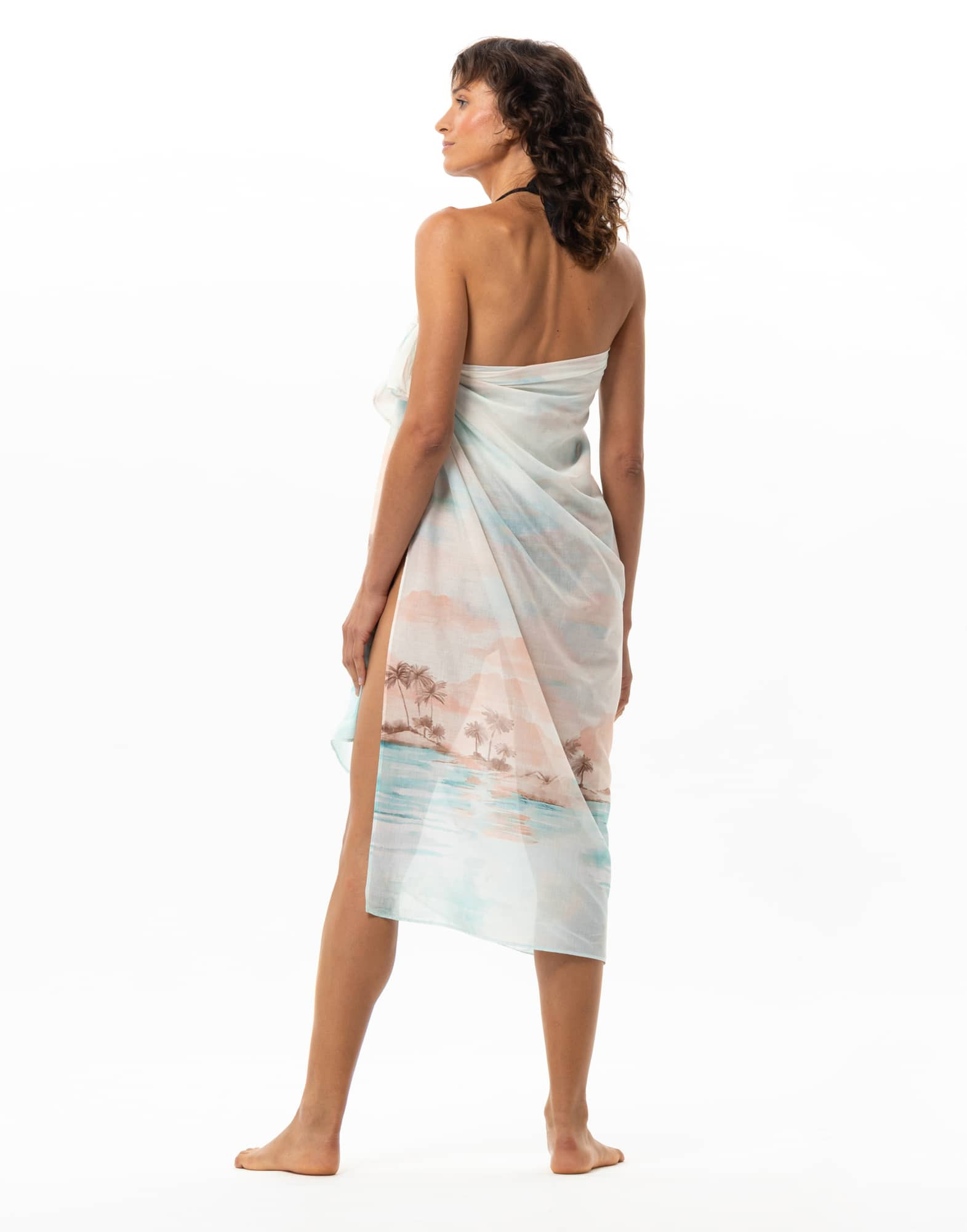 Sunset joins Le Jardin Aquatique, our sunny beachwear capsule collection imbued with a spirit of freedom. The Sunset sarong can be tied loosely like a large scarf, around the waist or as a cover-up dress.