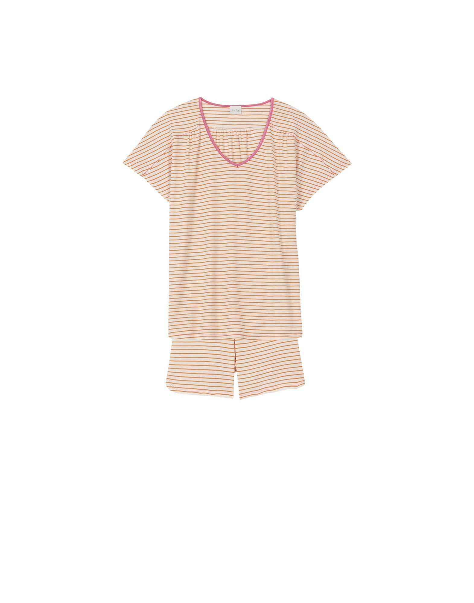 Striped pyjama shorts in cotton and modal FRUTTI 700 tangerine