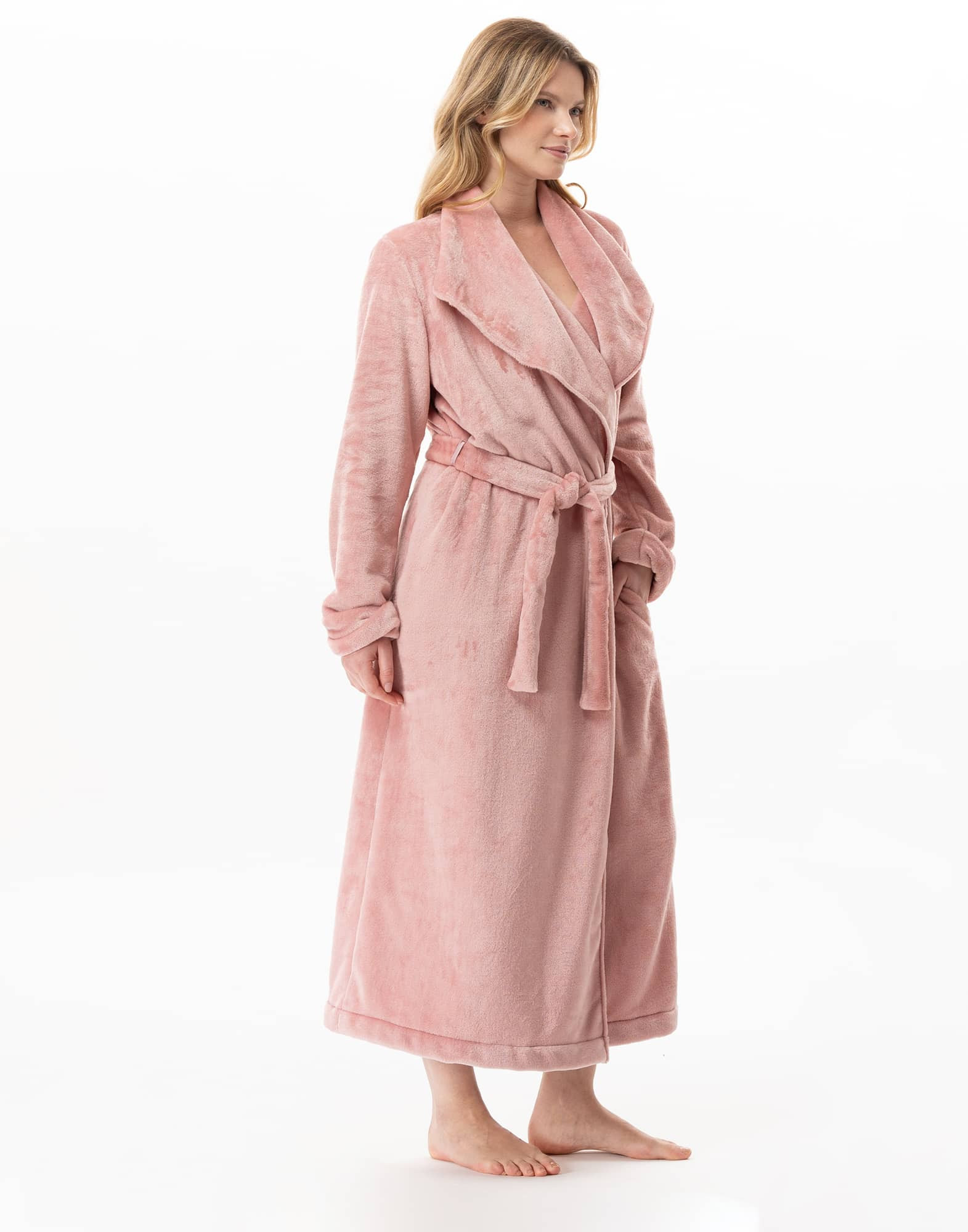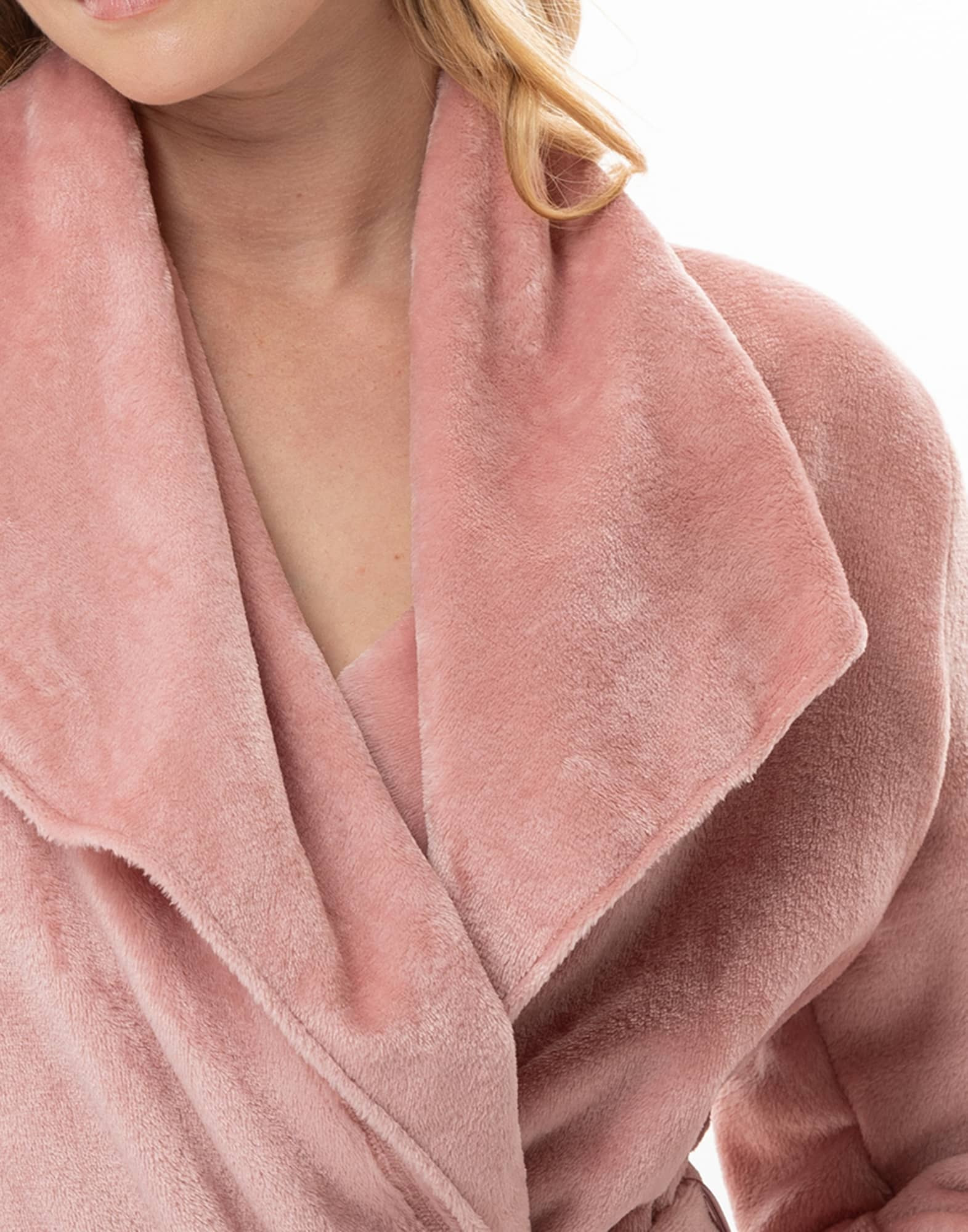Plush flannel crossed dressing gown ESSENTIEL Blush