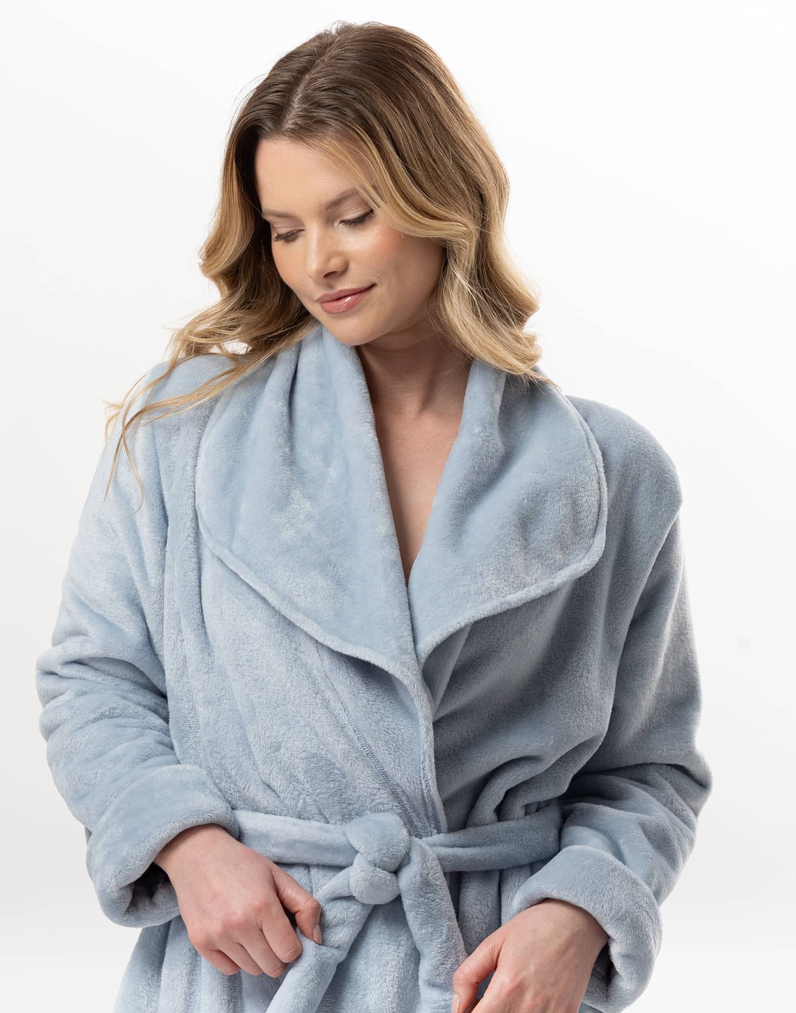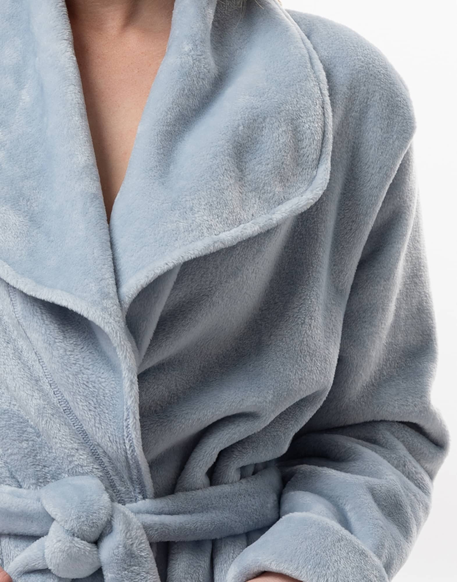 Plush flannel crossed dressing gown ESSENTIEL Sky