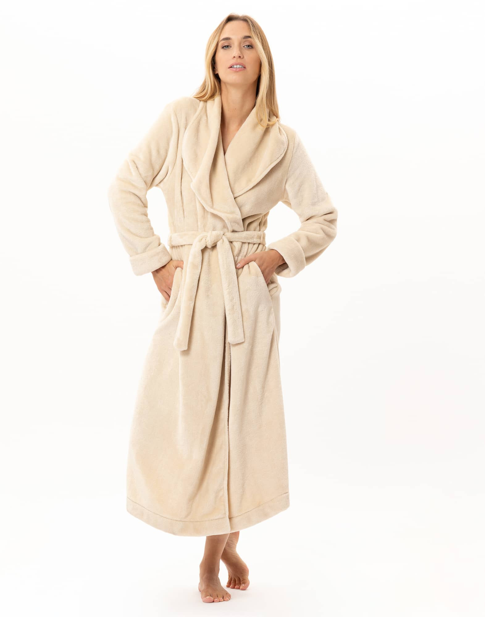 At LE CHAT, winter is all about softness, warmth, and comfort. Our new extra-long Essentiel robe has been designed for those seeking full-body warmth from morning to night. Its wide shawl collar unfolds elegantly and can be folded over to cover the neck fully, depending on your comfort needs.