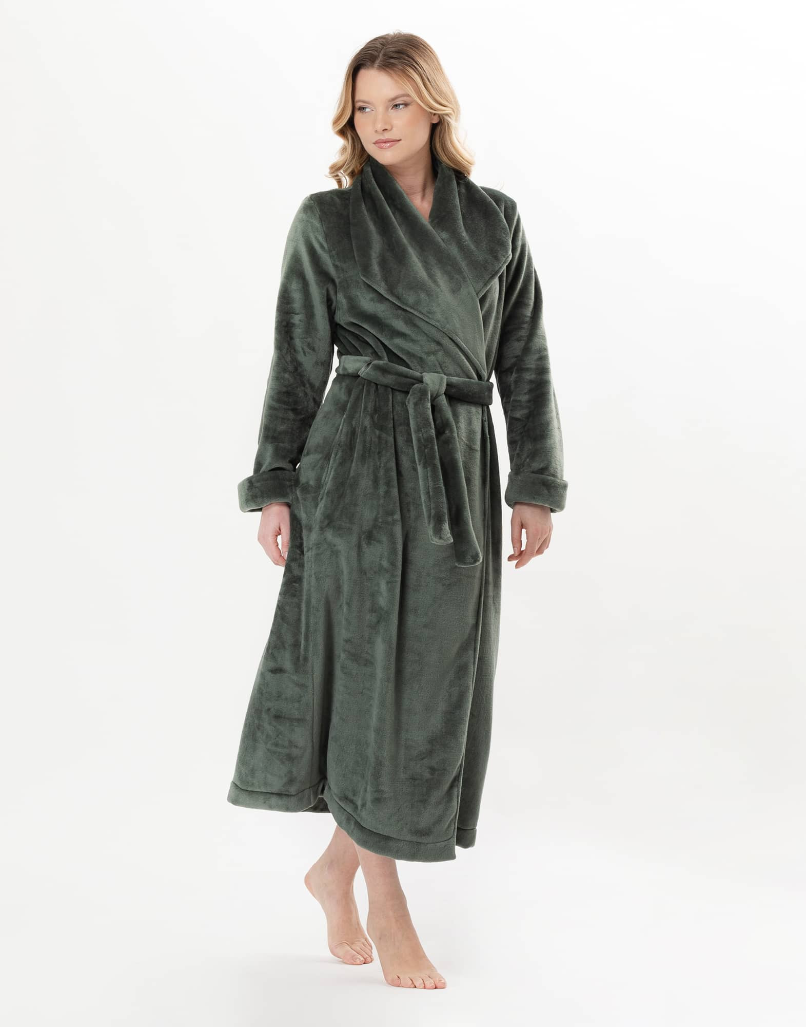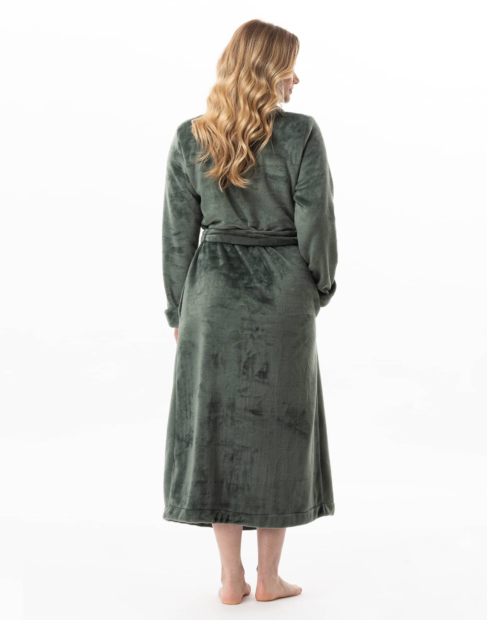 Plush flannel crossed dressing gown ESSENTIEL Lichen