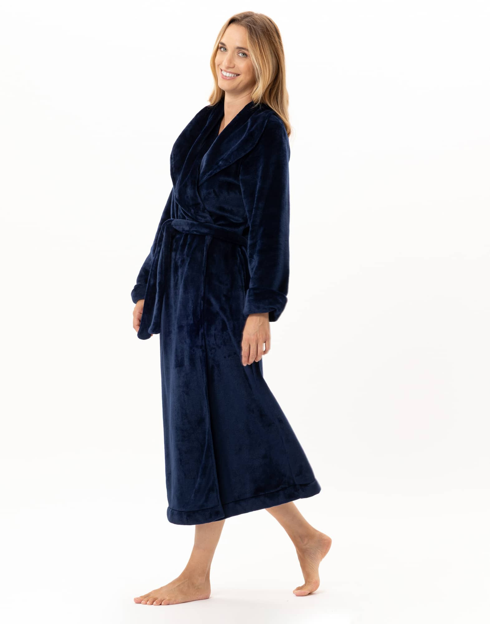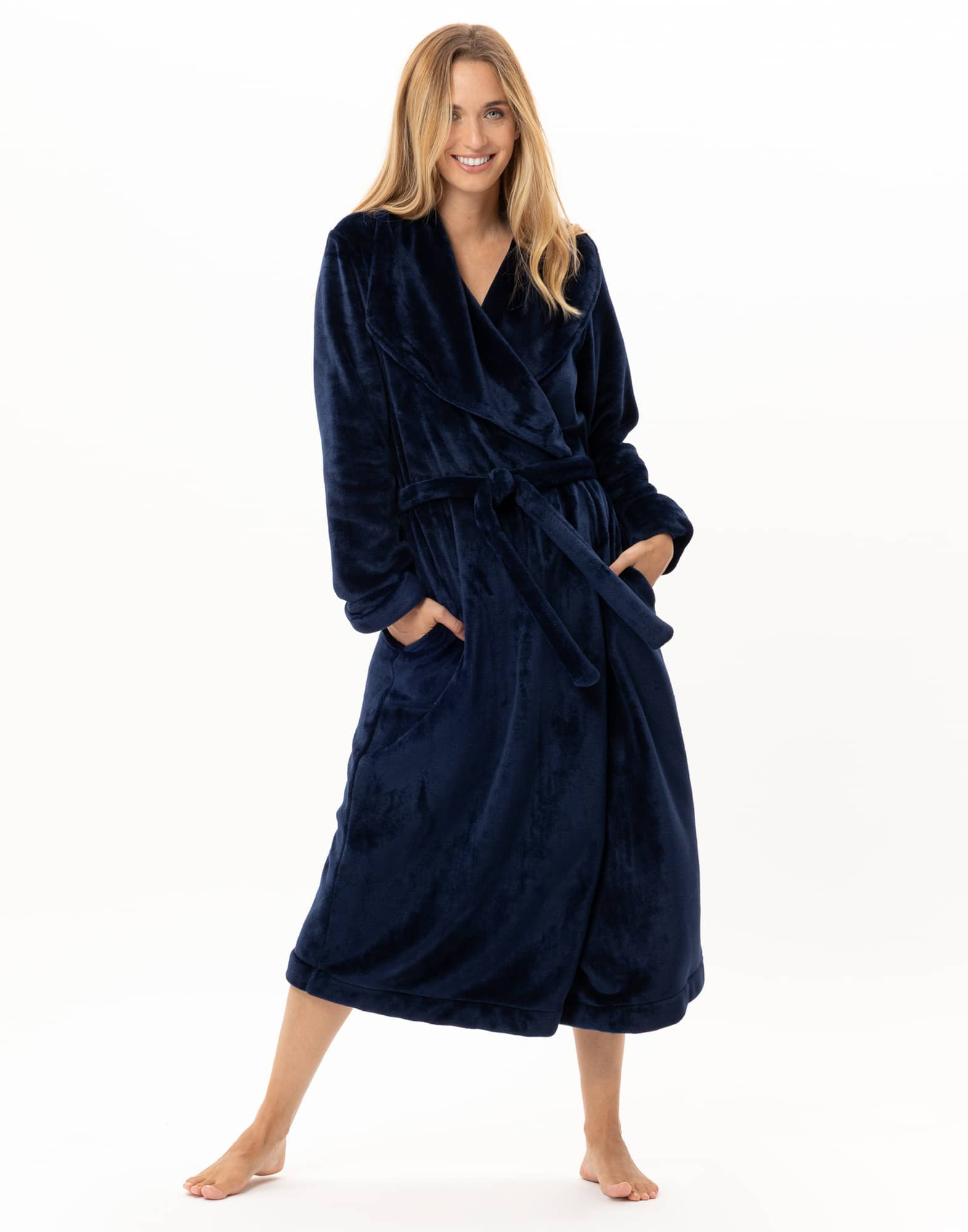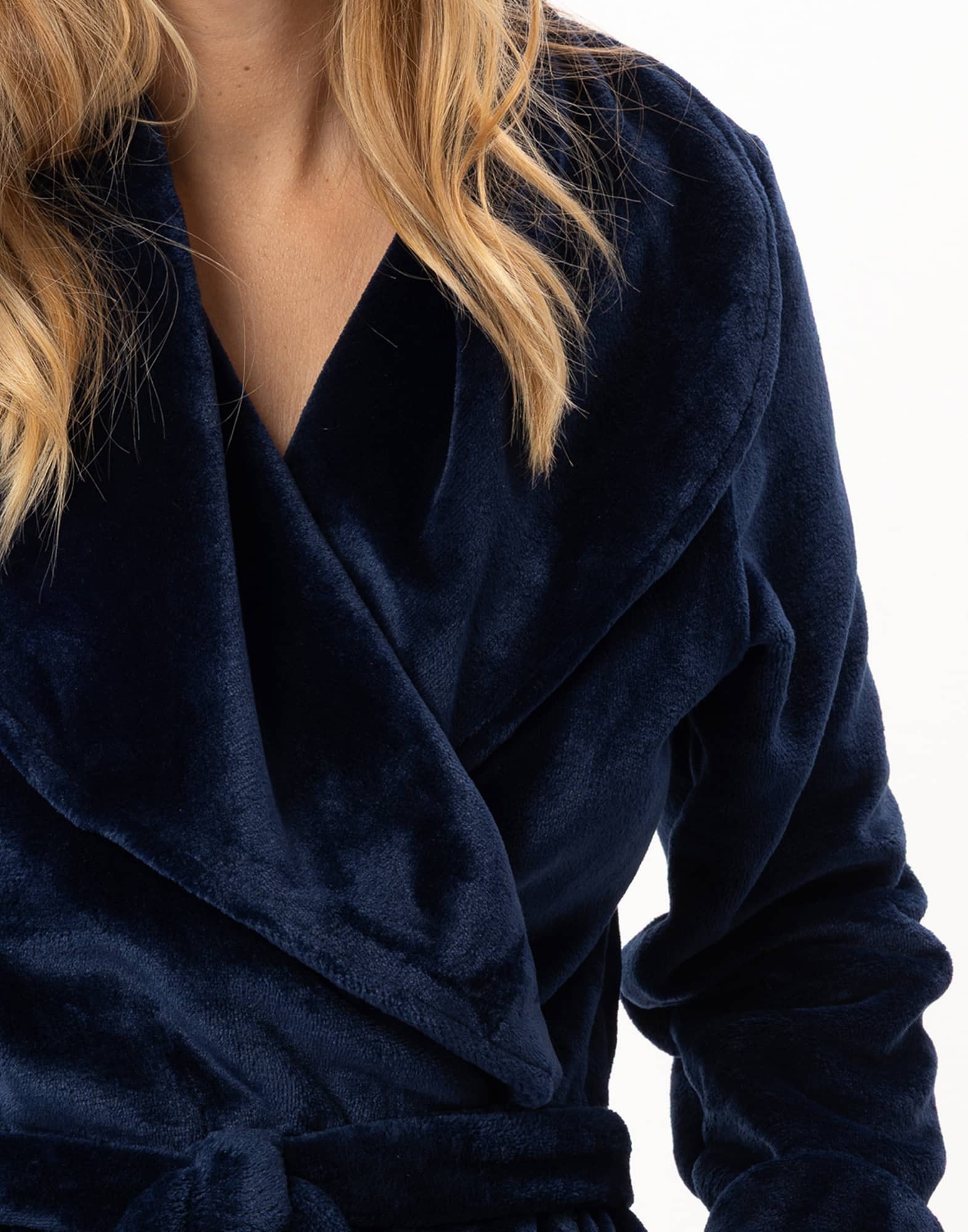 Plush flannel crossed dressing gown ESSENTIEL Navy Blue