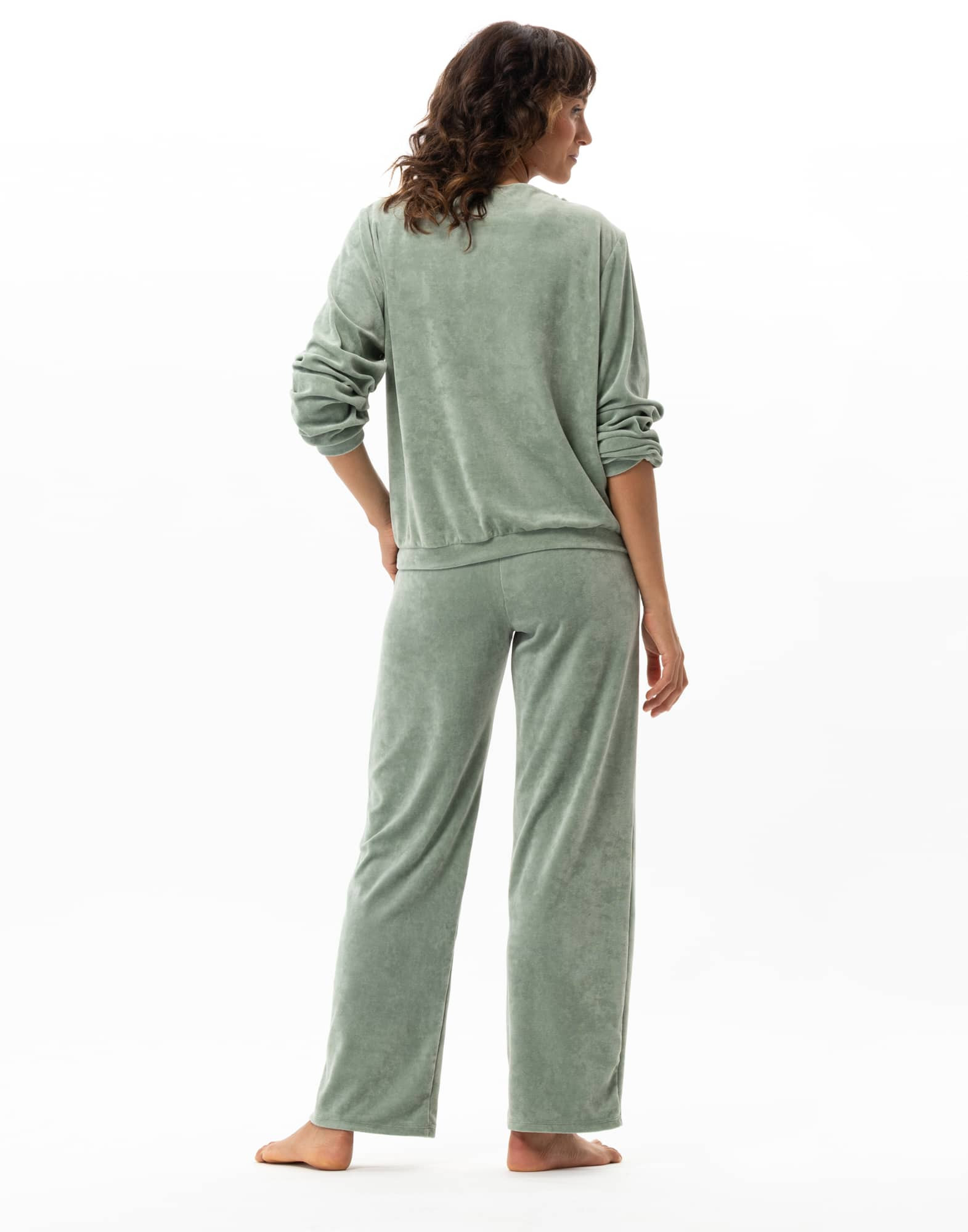 The soft, lightweight velvet of the Relax loungewear set offers the same comfort as our iconic winter looks, in a lighter version that is perfect for transitional seasons.