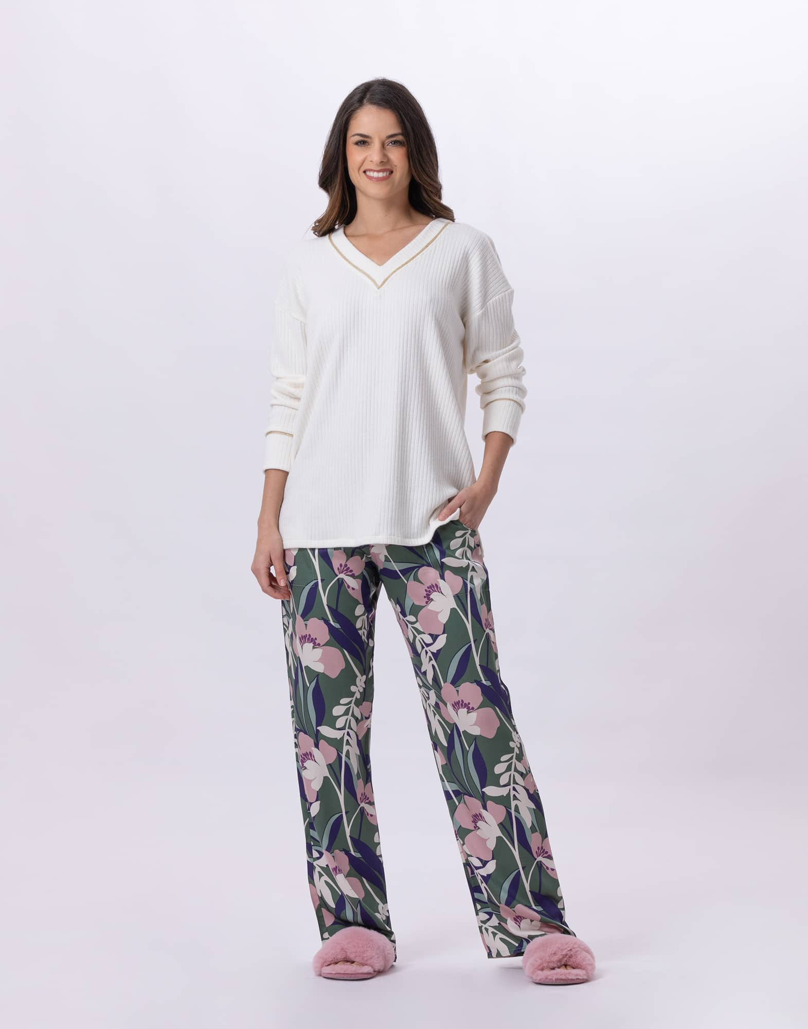Everyday, at home, out and about or for the night, all 3 options are open to you! More than just warm pajamas, GIOIA 802 is homewear, loungewear even, in the spirit of a jogging suit, with a soft, deliberately oversized sweater. The pants are straighter, to add structure to the outfit.