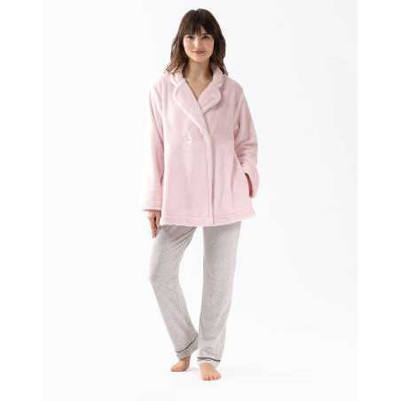 A touch of ready-to-wear, the paletot version of the Essentiel jacket features a maxi notched collar and a double-breasted crossover closure. It adds a hint of warmth to your homewear, nightwear, or even daytime outfits.