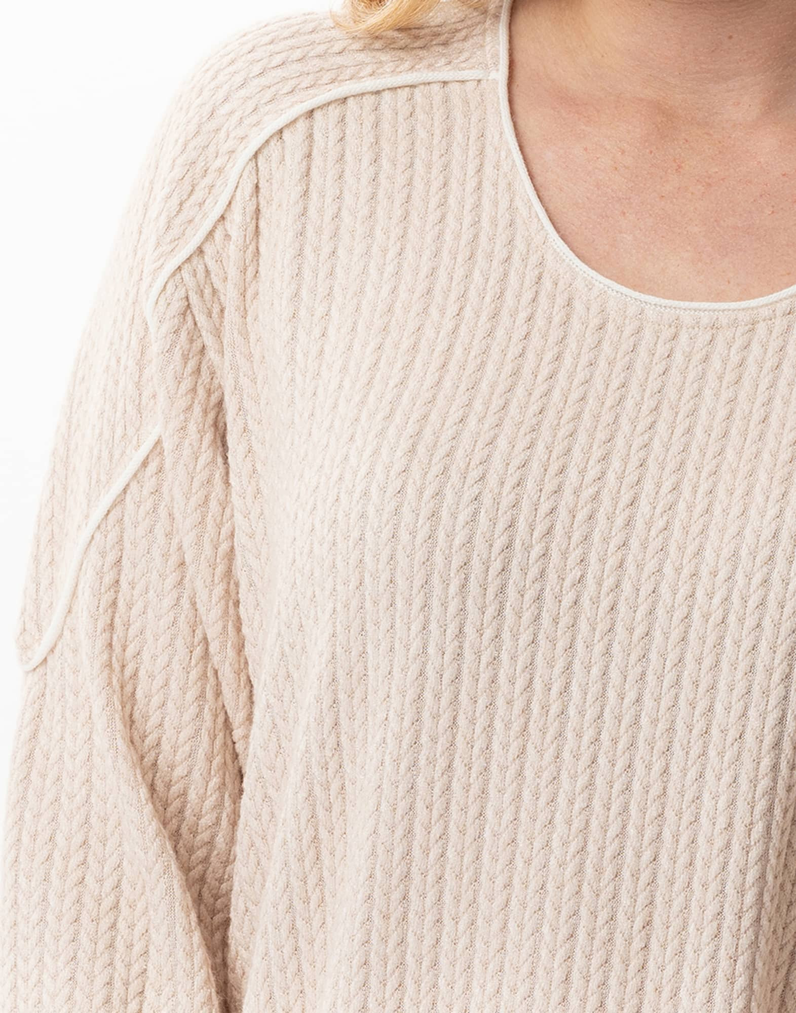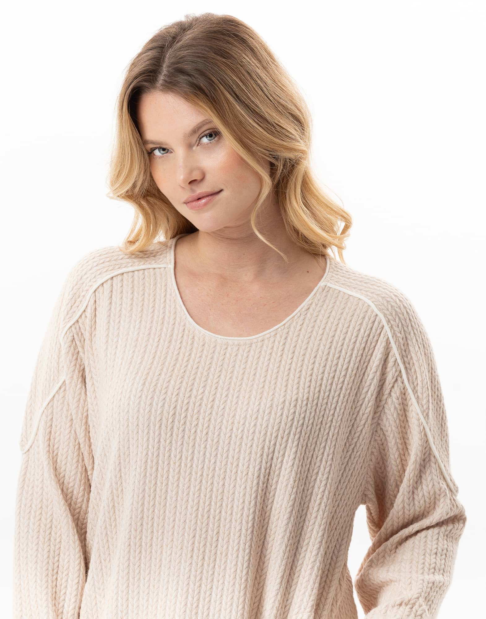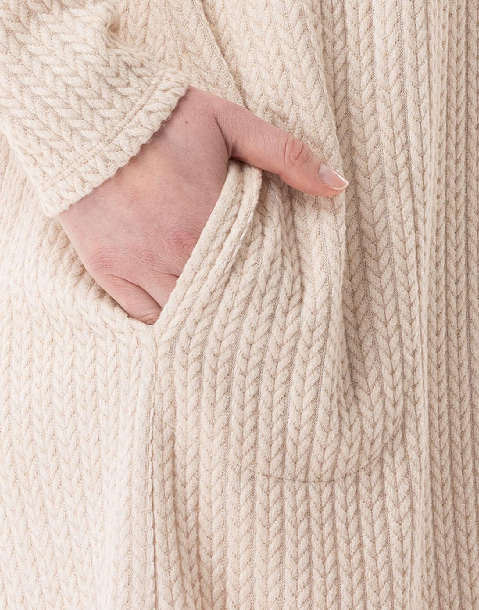 With a wow effect, its soft braided knit is generous and enveloping, while also offering a fluid drape that follows your every move.