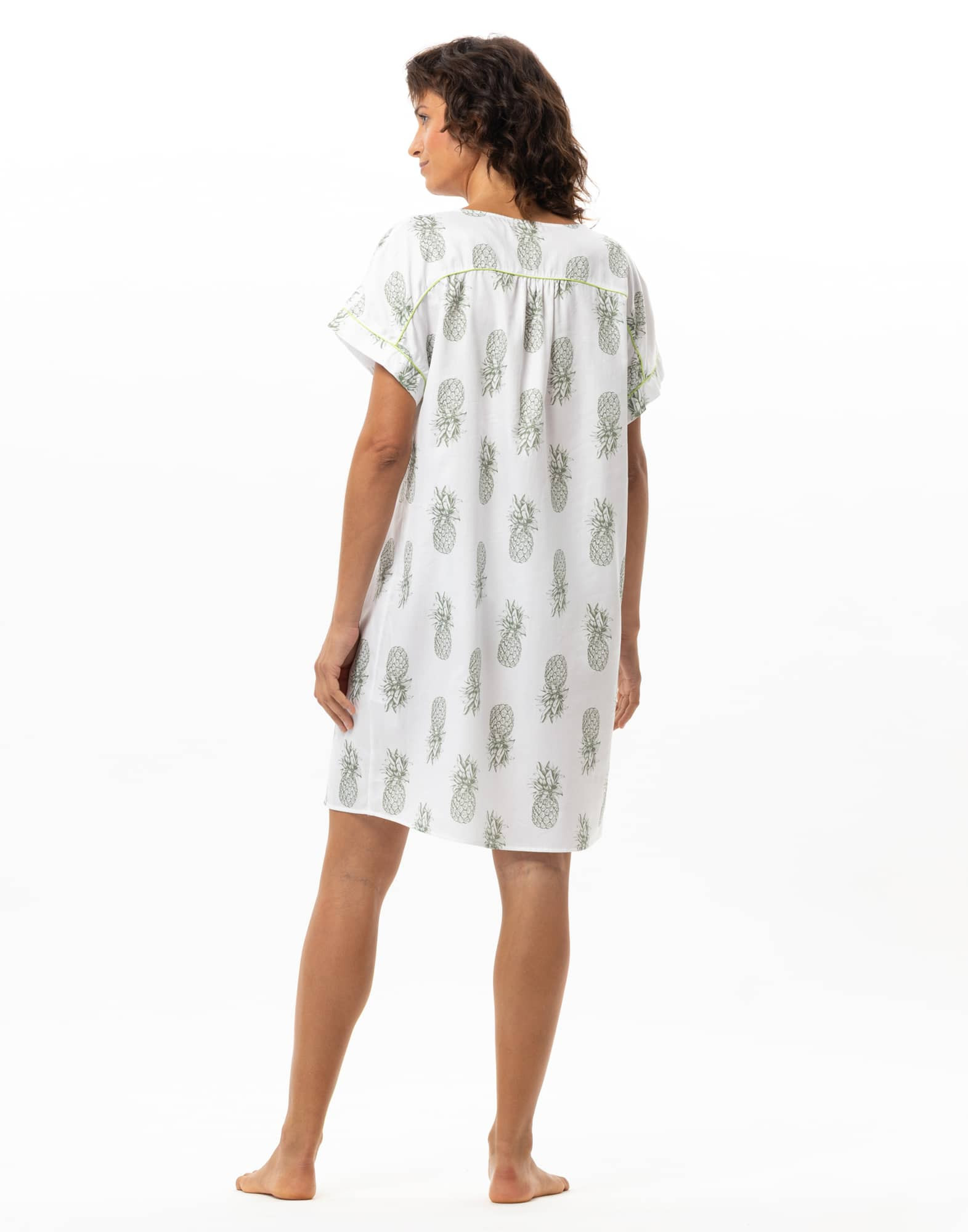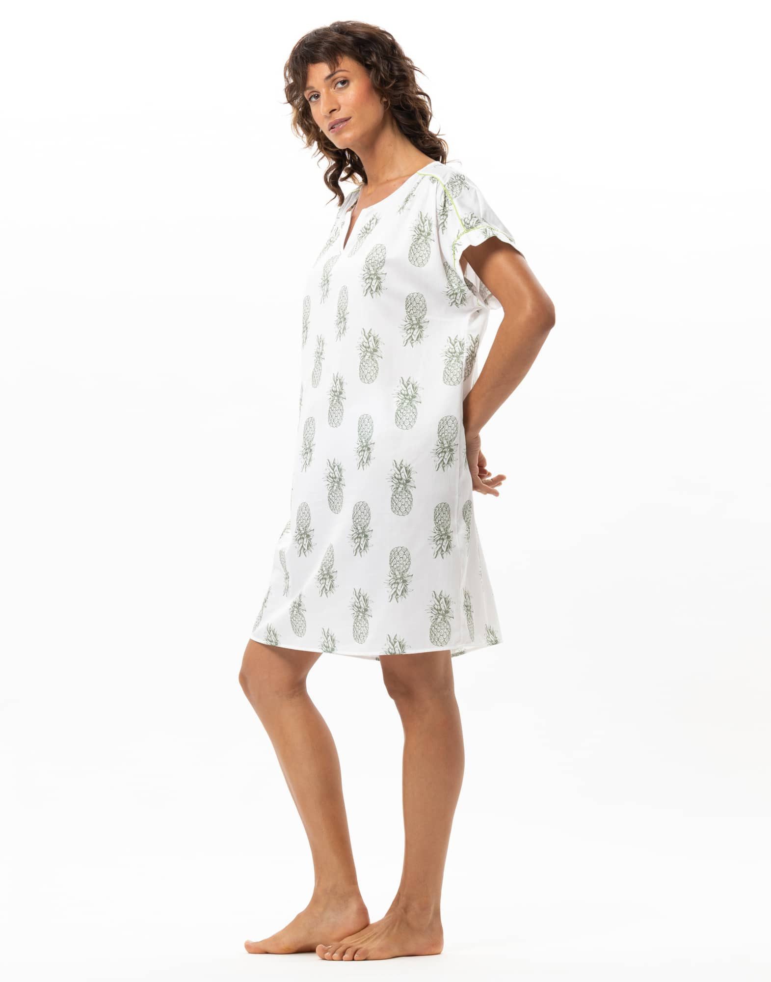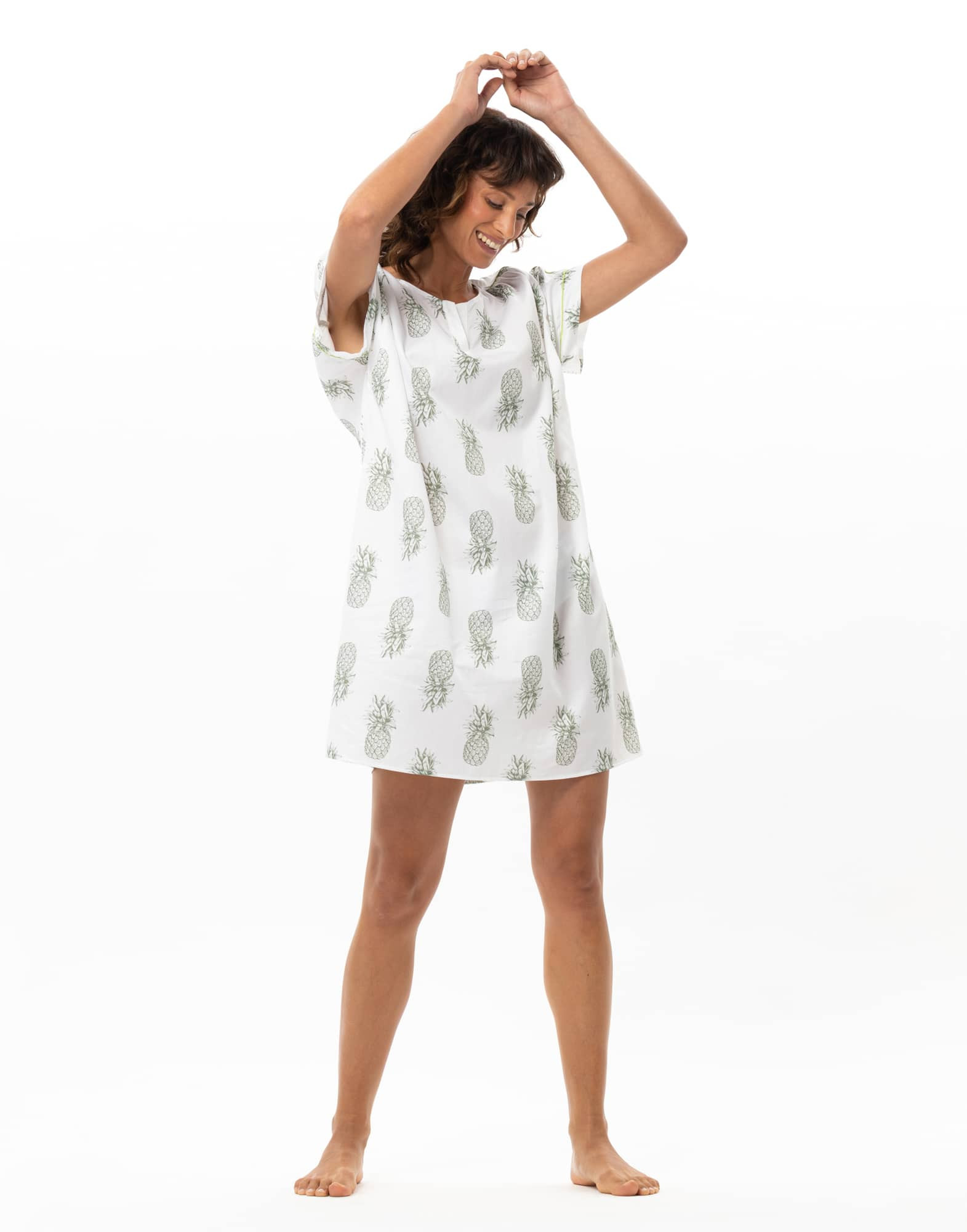 With its exclusive pineapple print, the Acapulco nightdress embodies the spirit of our Jardin Exotique, bringing a sunny touch to your nightwear wardrobe. Its cotton satin offers the perfect combination of softness, lightness and structure.