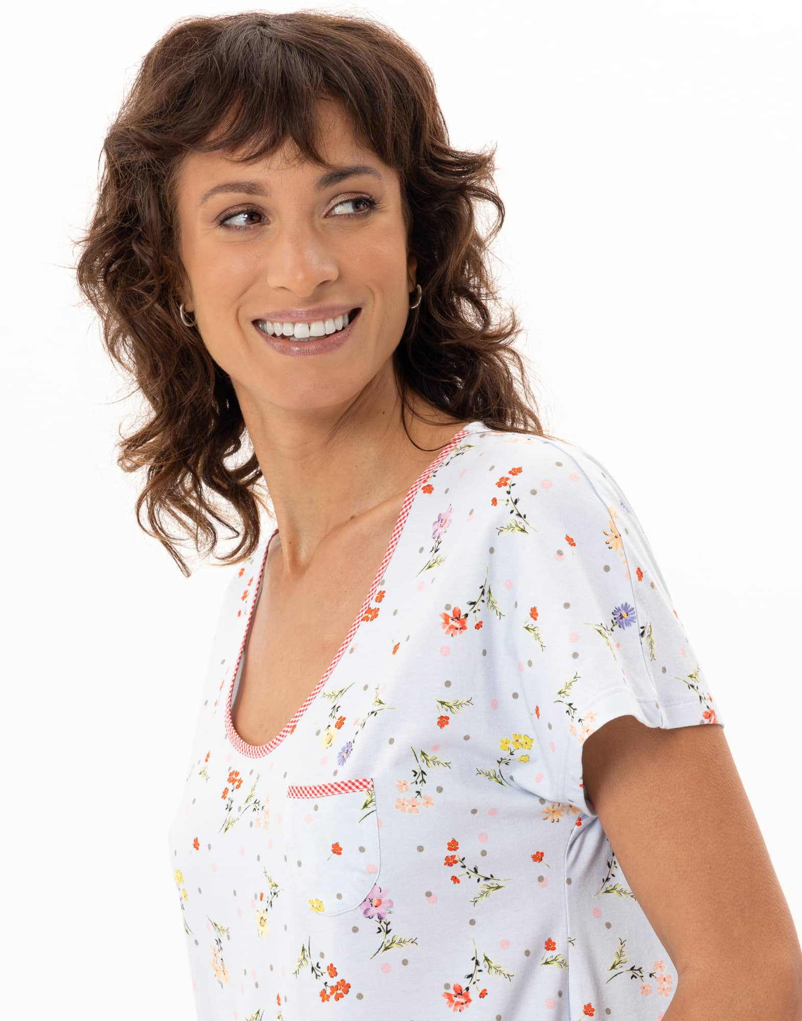 The Daisy line offers a fresh and poetic nightwear wardrobe, available in white or sky blue, ideal for the transitional seasons.