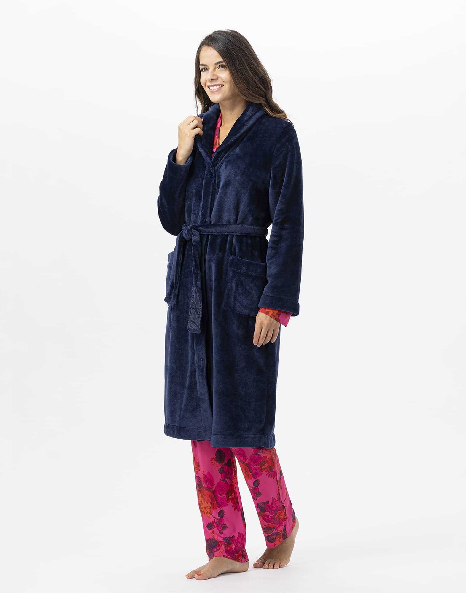 Plush flannel button-down dressing gown ESSENTIEL Navy Blue