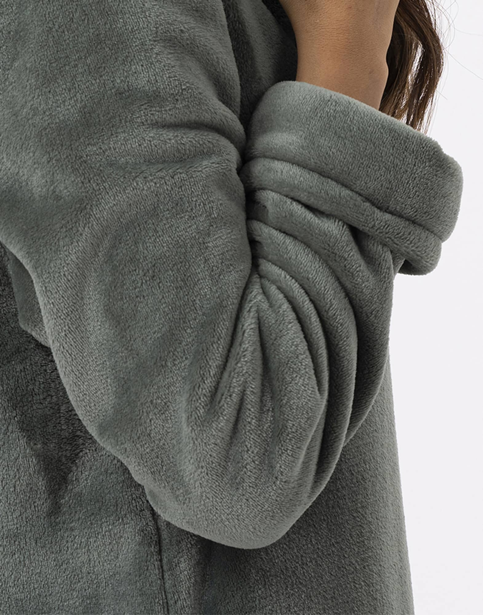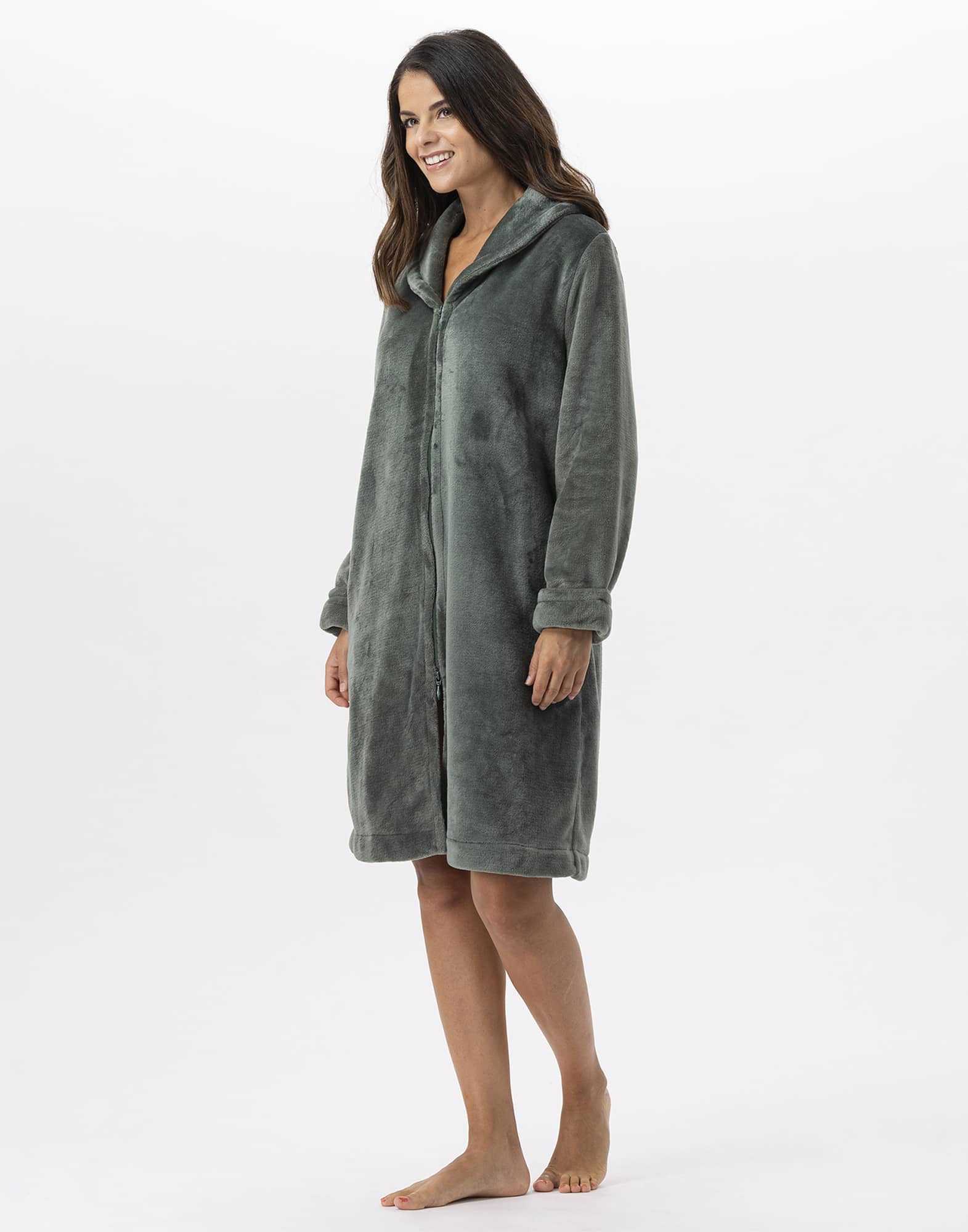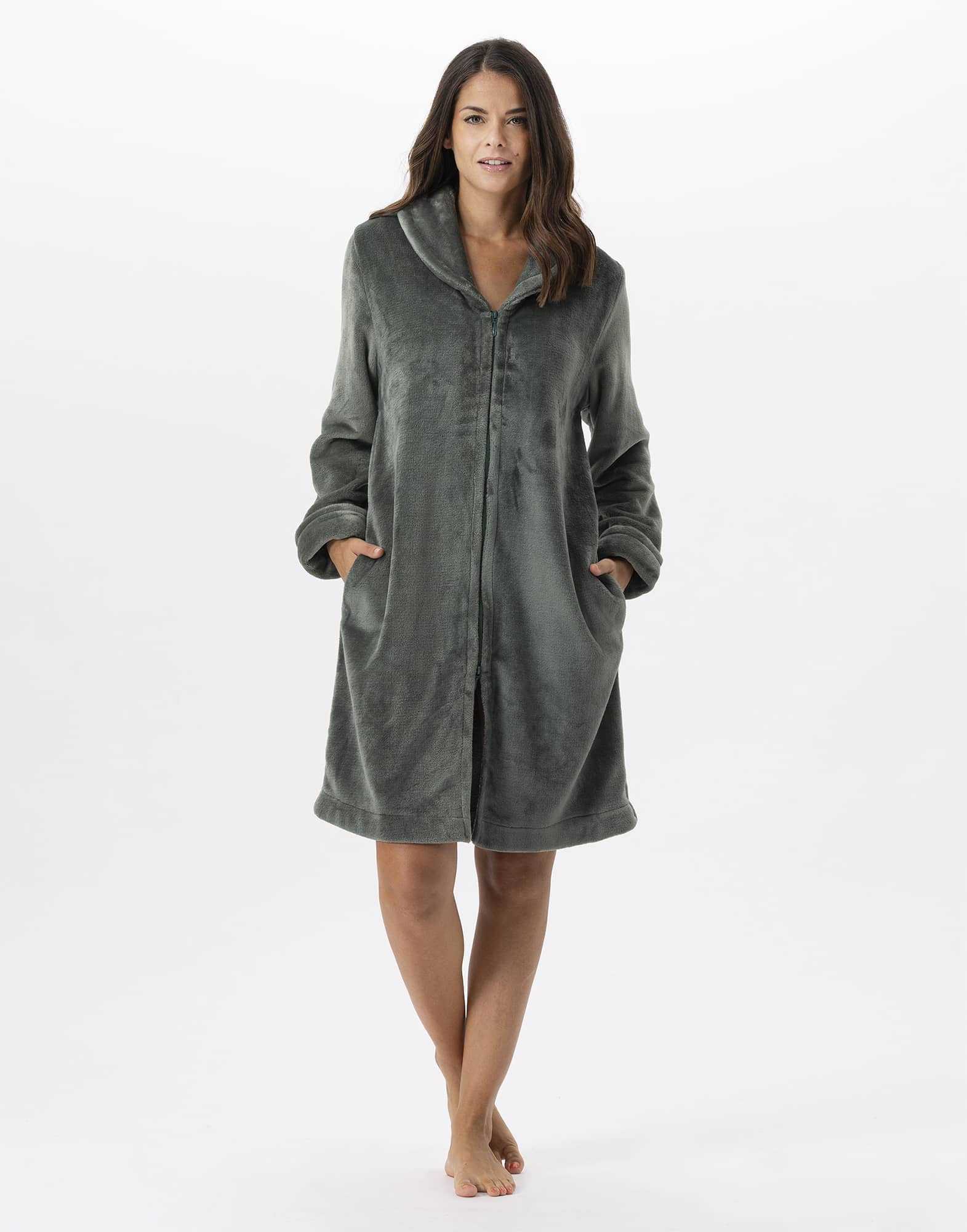 Plush flannel zipped dressing gown ESSENTIEL Lichen