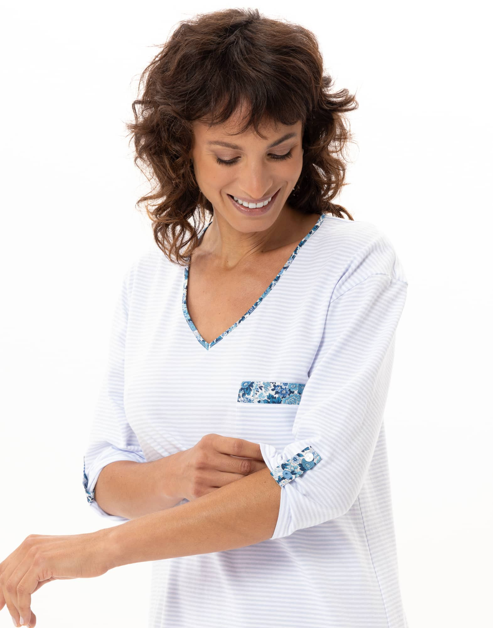 - Revers de manche maintenu par une patte en Liberty, permettant de garder la manche longueur ¾