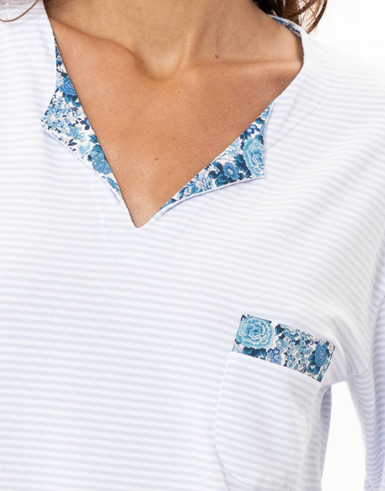 - Encolure en V arrondi souligné par un petit biais en Liberty