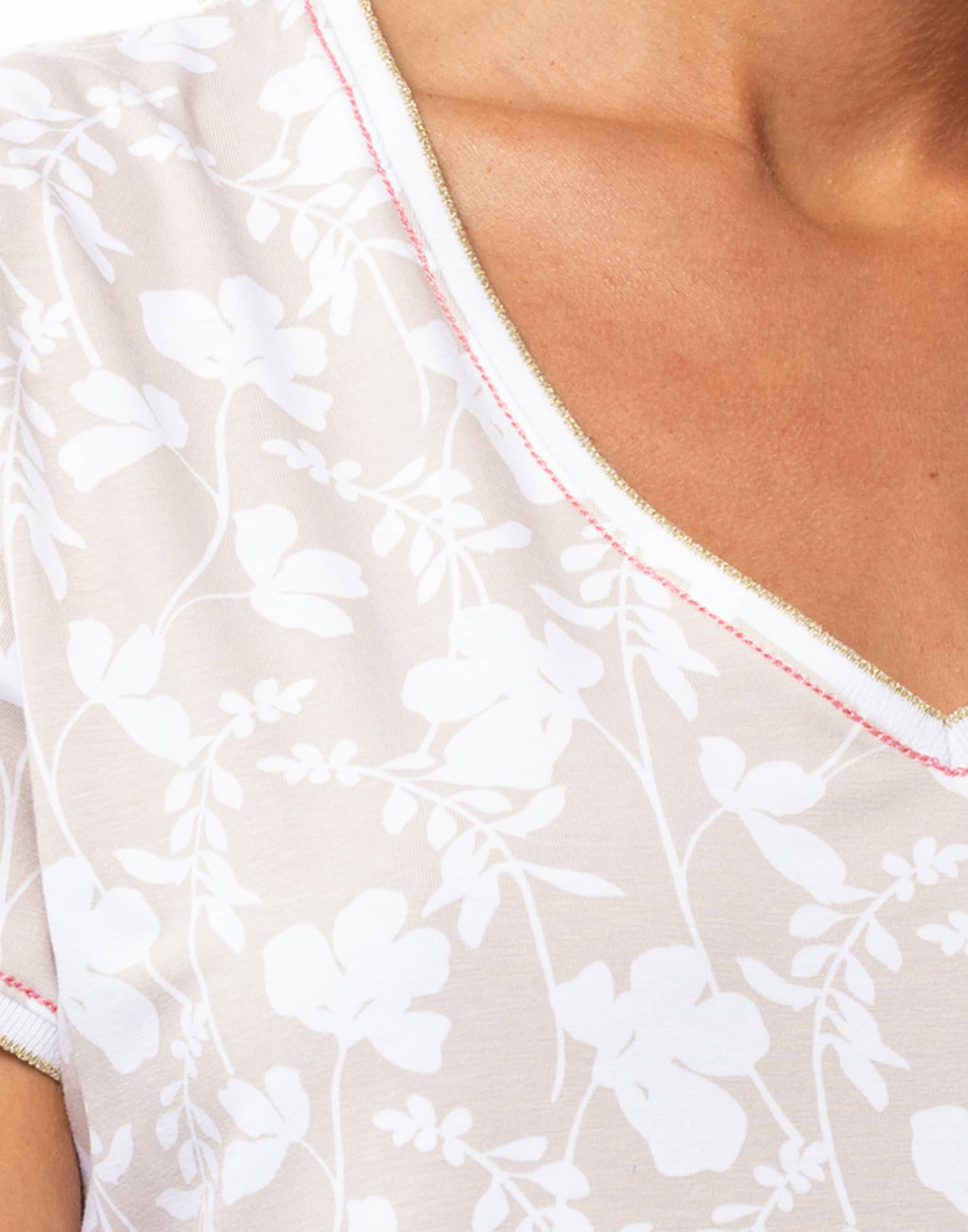 - Encolure en V et manches courtes soulignées par un petit bord côte