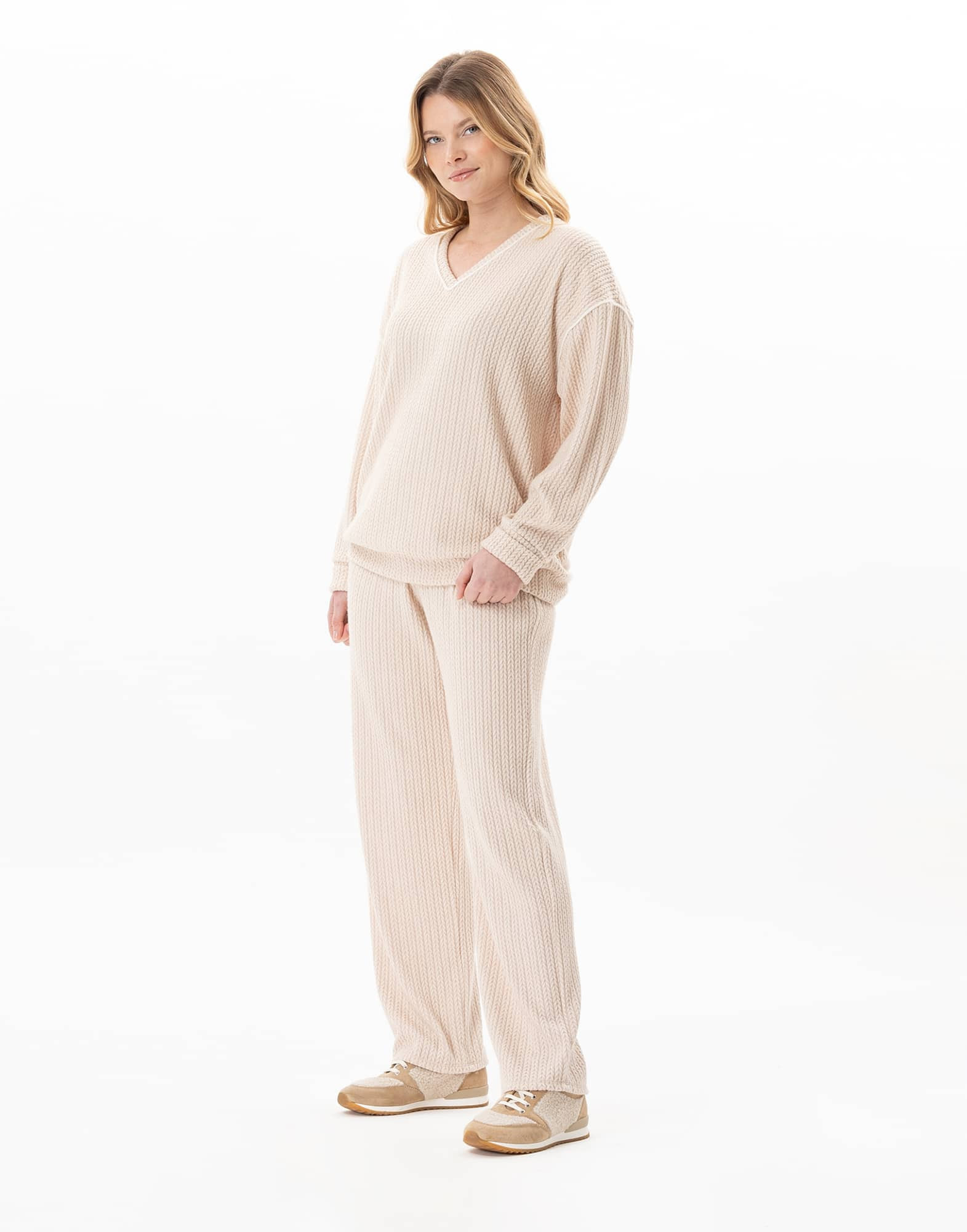 Notre ensemble homewear Shetland se porte volontairement loose, nous vous recommandons de choisir votre taille habituelle. Si vous hésitez entre 2 tailles, consultez notre guide de tailles pour trouver la vôtre.