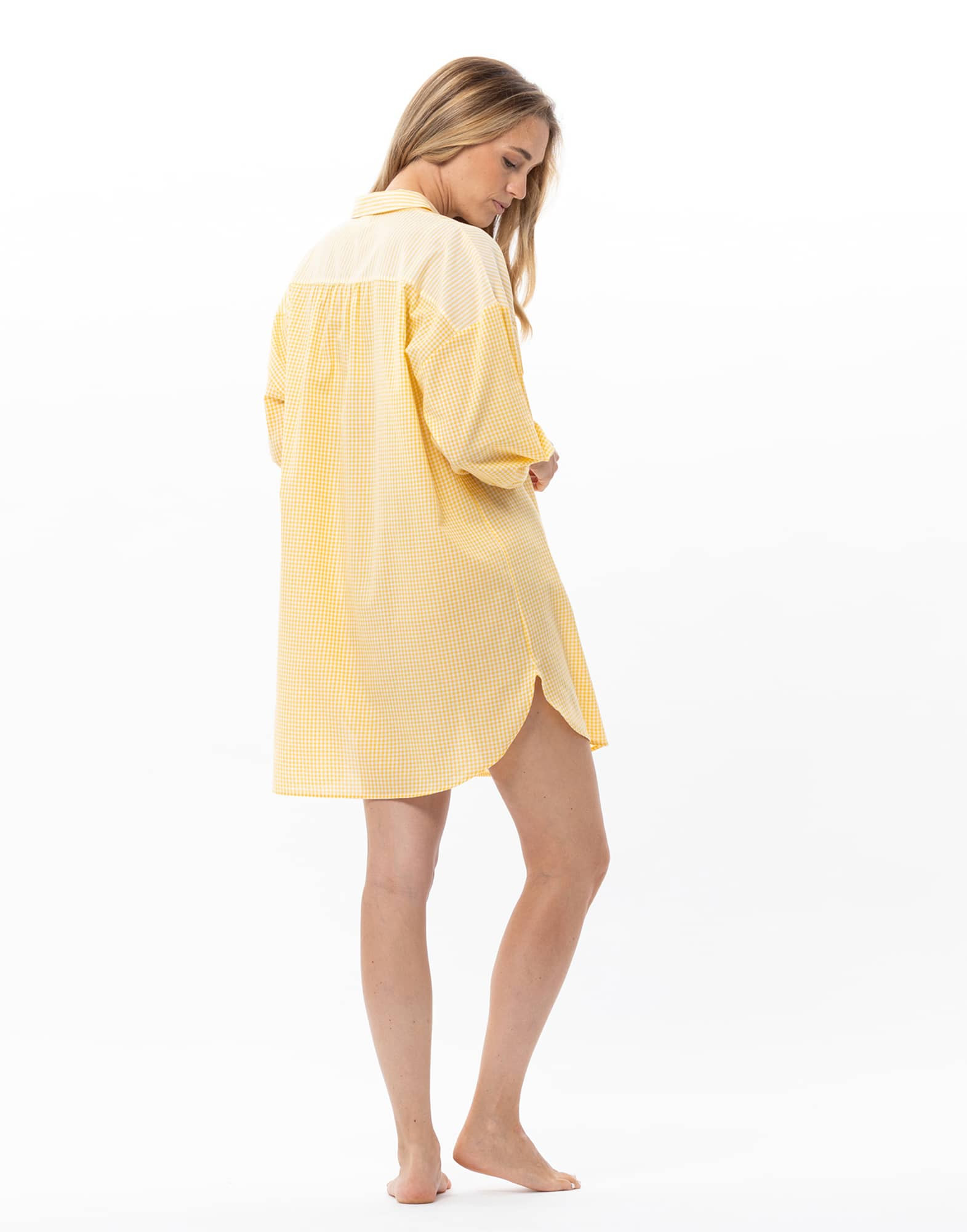 Sa coupe souple et légèrement ample assure un confort naturel, tandis que le col chemise et la patte de boutonnage structurent la silhouette. Une pièce aussi facile à porter pour dormir qu’à détourner au grand jour.