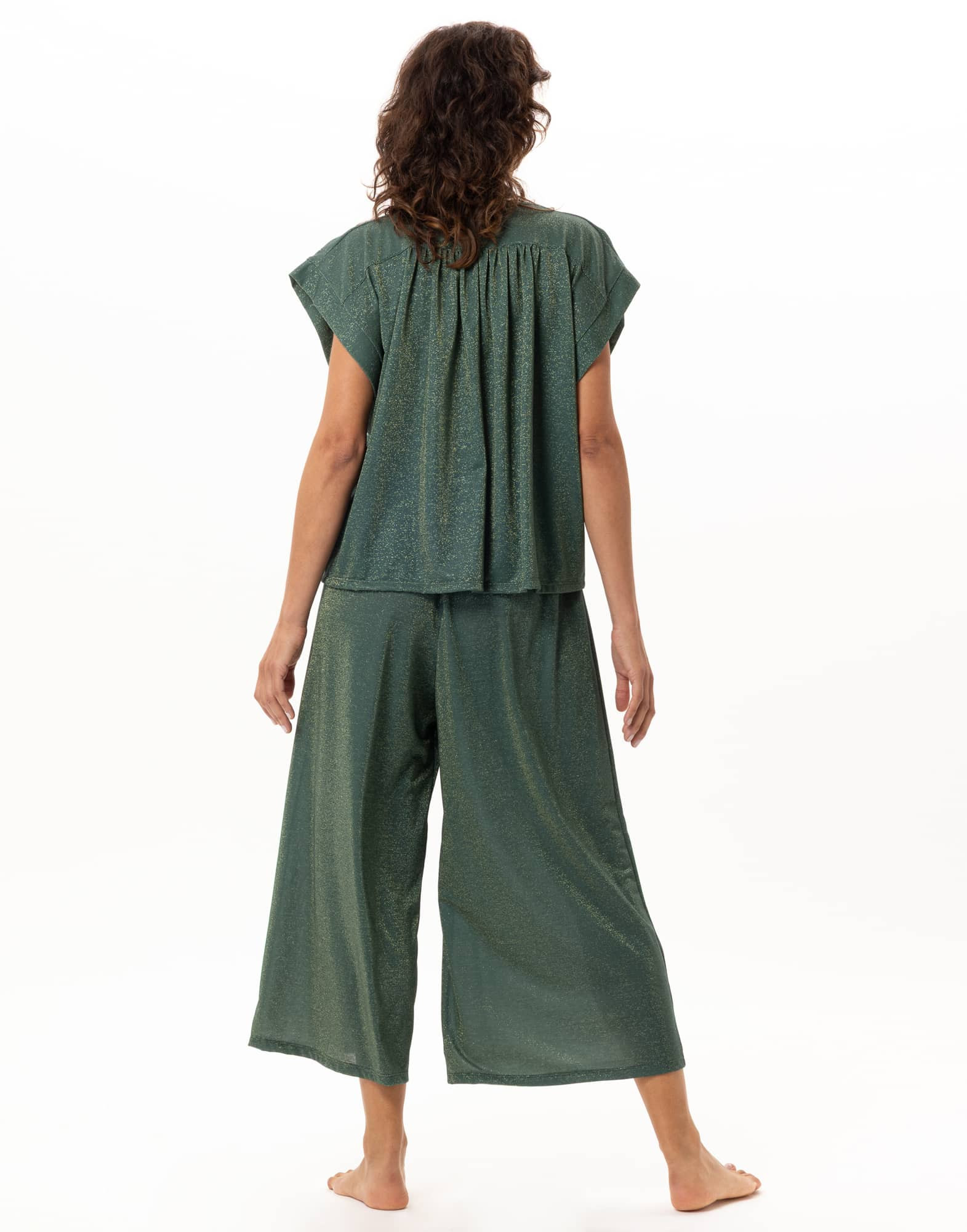 Confectionné en Italie, sa maille ultra légère révèle un éclat subtilement irisé grâce à de fins fils Lurex® qui captent la lumière. En abricot vitaminé ou en kaki chic, il dessine une silhouette fluide et agréable à porter chez soi comme en vacances. Facile à associer, il se coordonnera parfaitement avec le t-shirt ou le kaftan Coco.