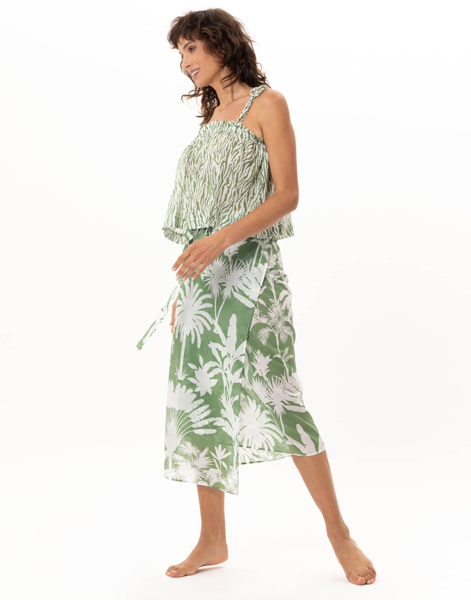 Léger et bien couvrant, le paréo Bronzette se noue simplement autour de la taille. Porté avec un maillot de bain ou associé au top Bronzette, l’allure est libre et résolument estivale.