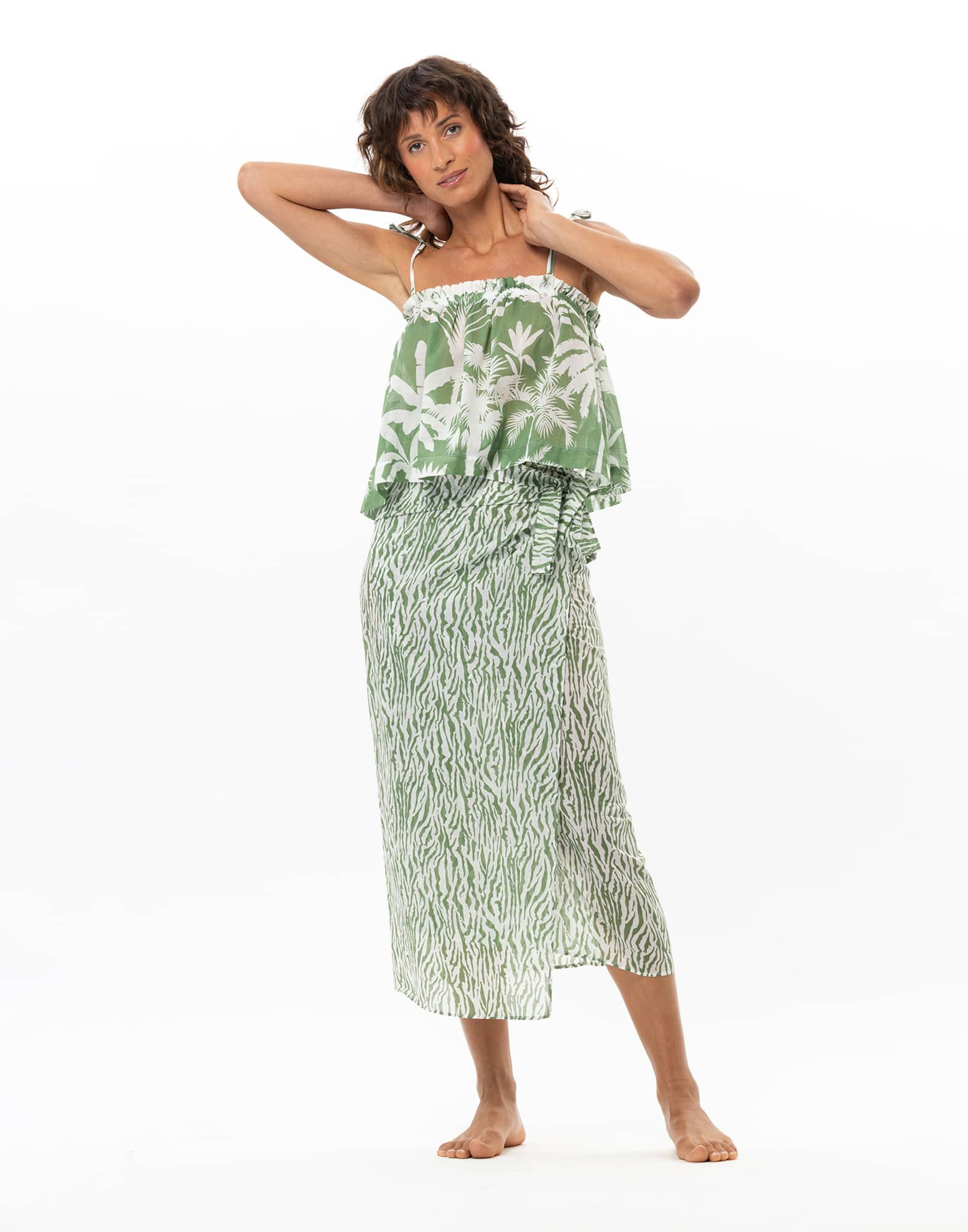 Léger et bien couvrant, le paréo Bronzette se noue simplement autour de la taille. Porté avec un maillot de bain ou associé au top Bronzette, l’allure est libre et résolument estivale.