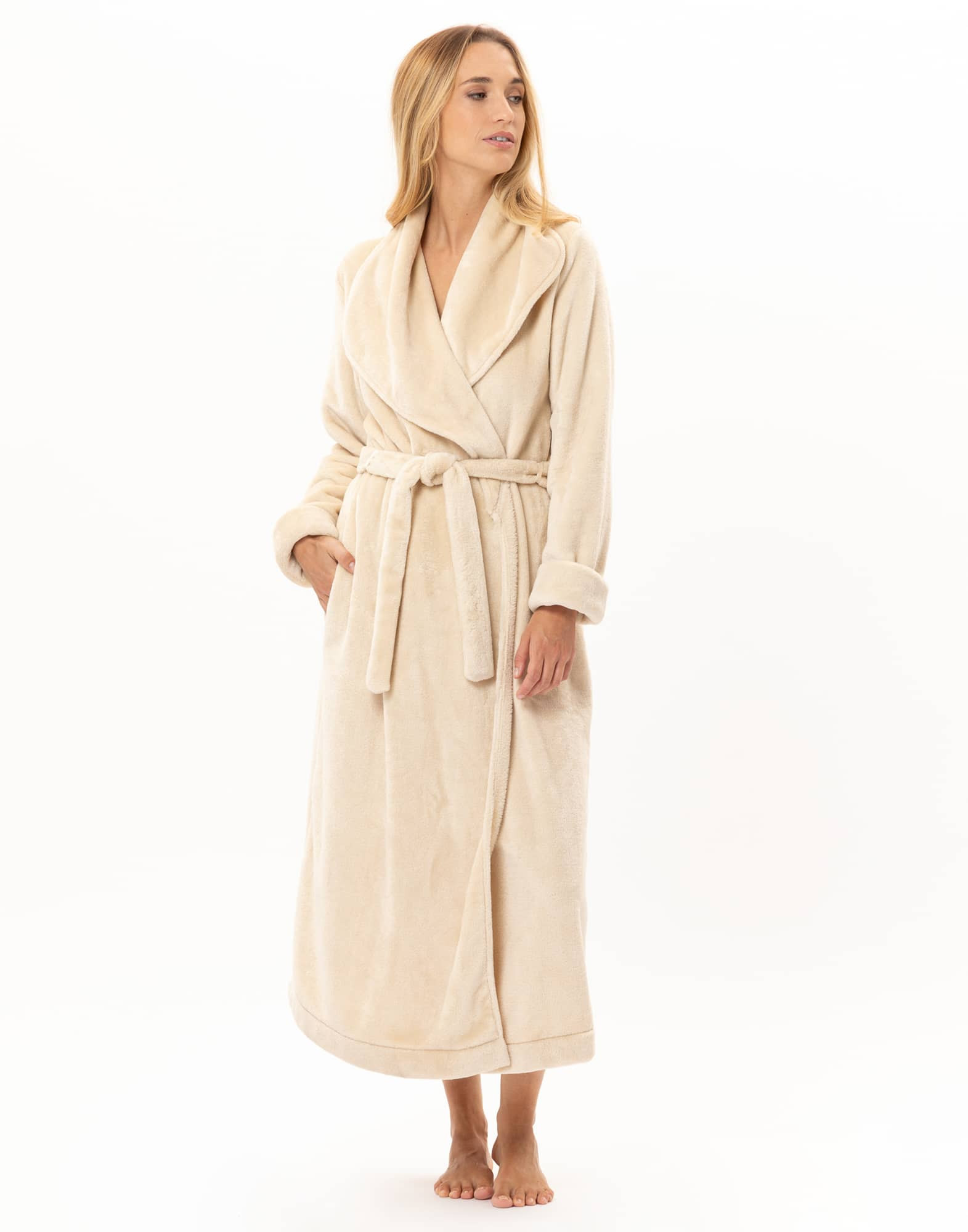 Peignoir croisé long en peluche flanelle ESSENTIEL Coquille