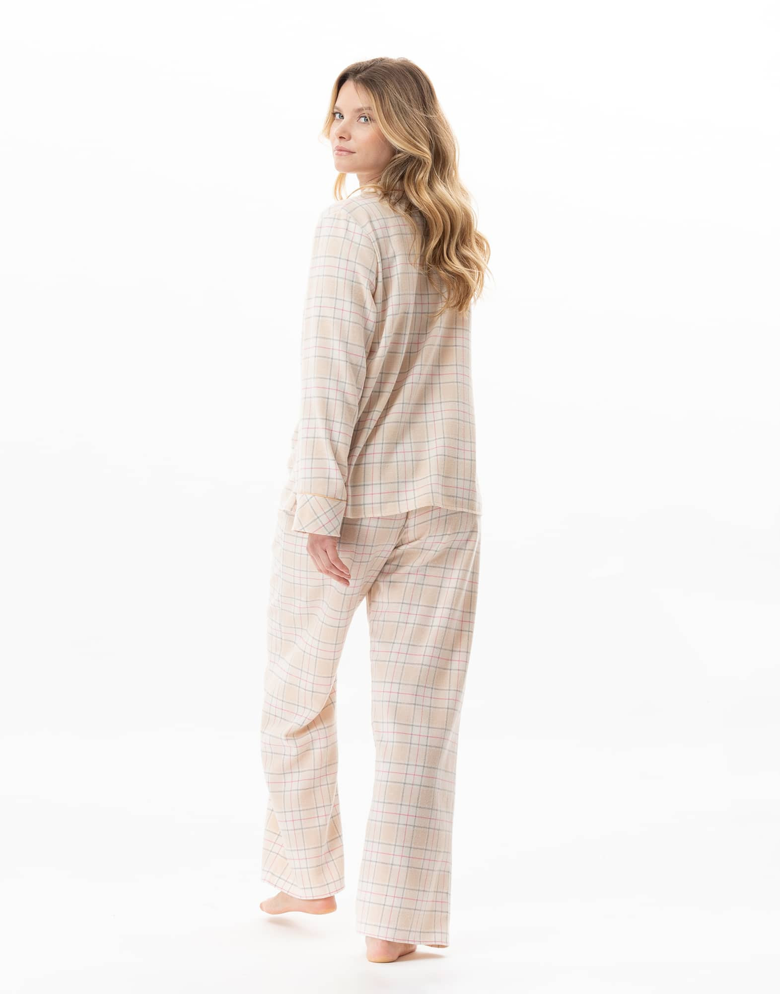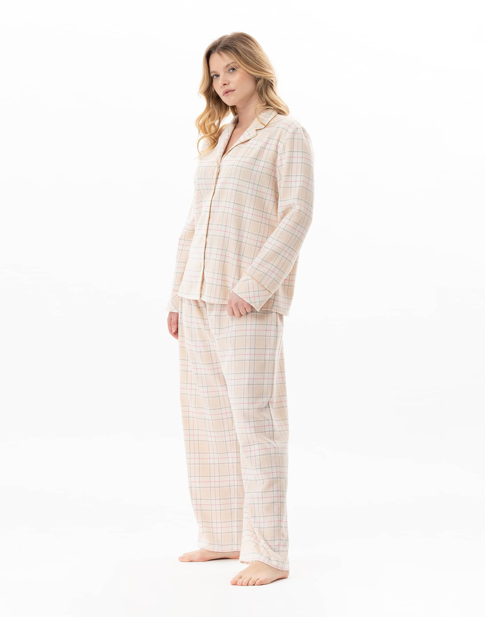 Tout le confort du pilou gratté, un tissu chaud, doux et agréable sur la peau, se décline ici sous la forme d’un pyjama tout boutonné.