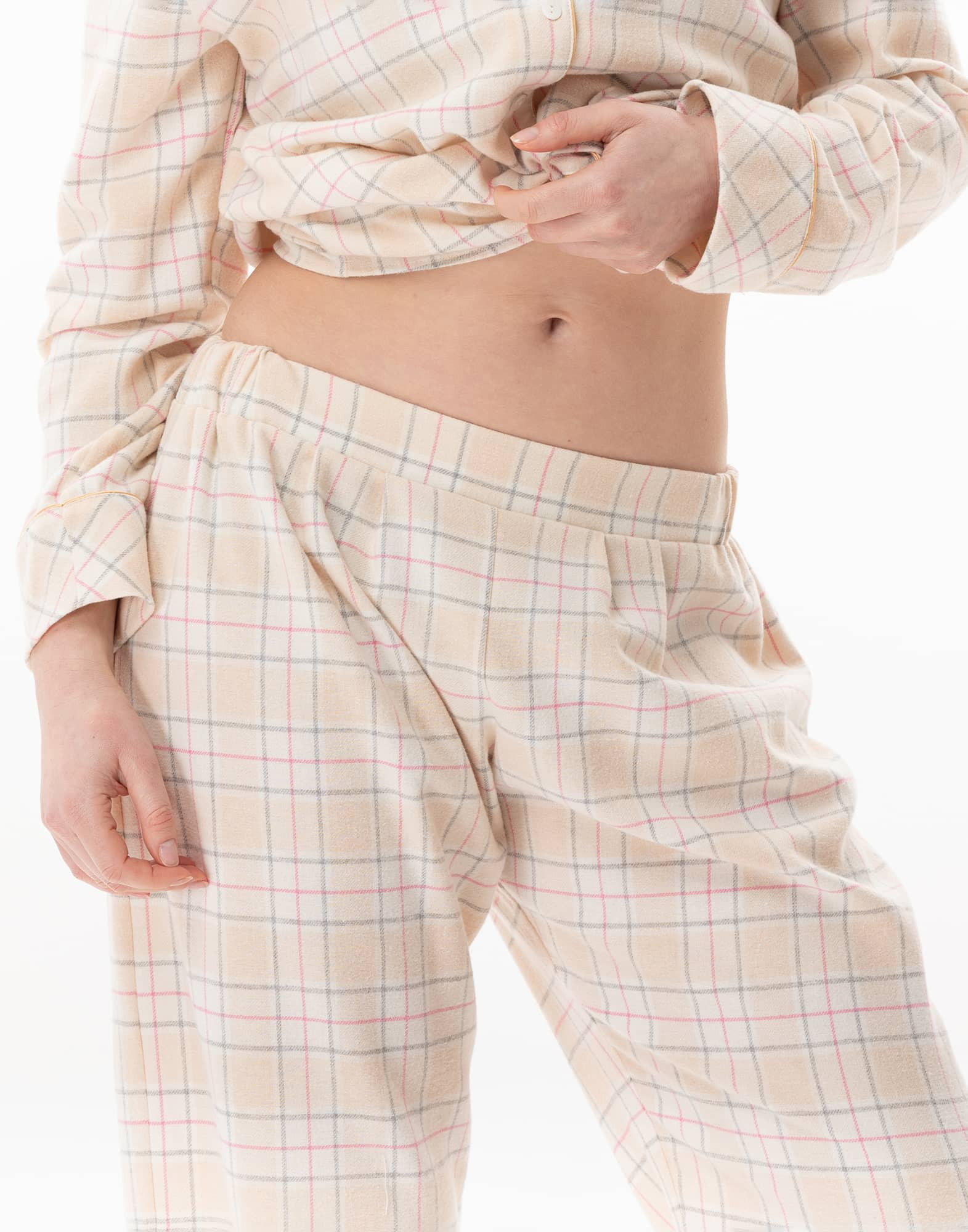 Dès les premiers frissons de l’automne, il vous accompagne pour bien dormir, pour vos routines bien-être ou pour tous vos moments cosy chez vous. Avec son top tout boutonné et son total look carreaux qui lui donnent un style un brin vintage et en font un incontournable du cocooning version 2025-2026.