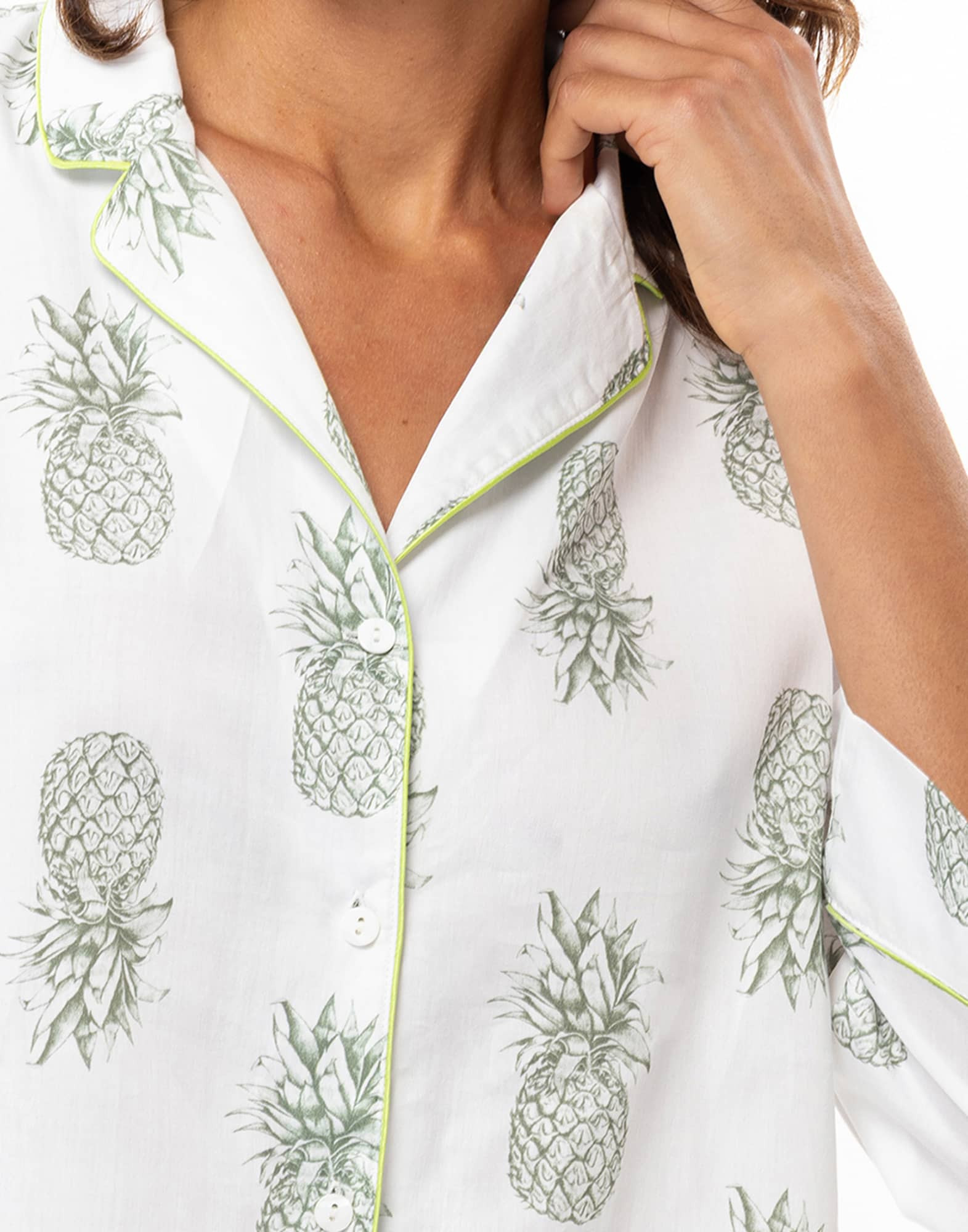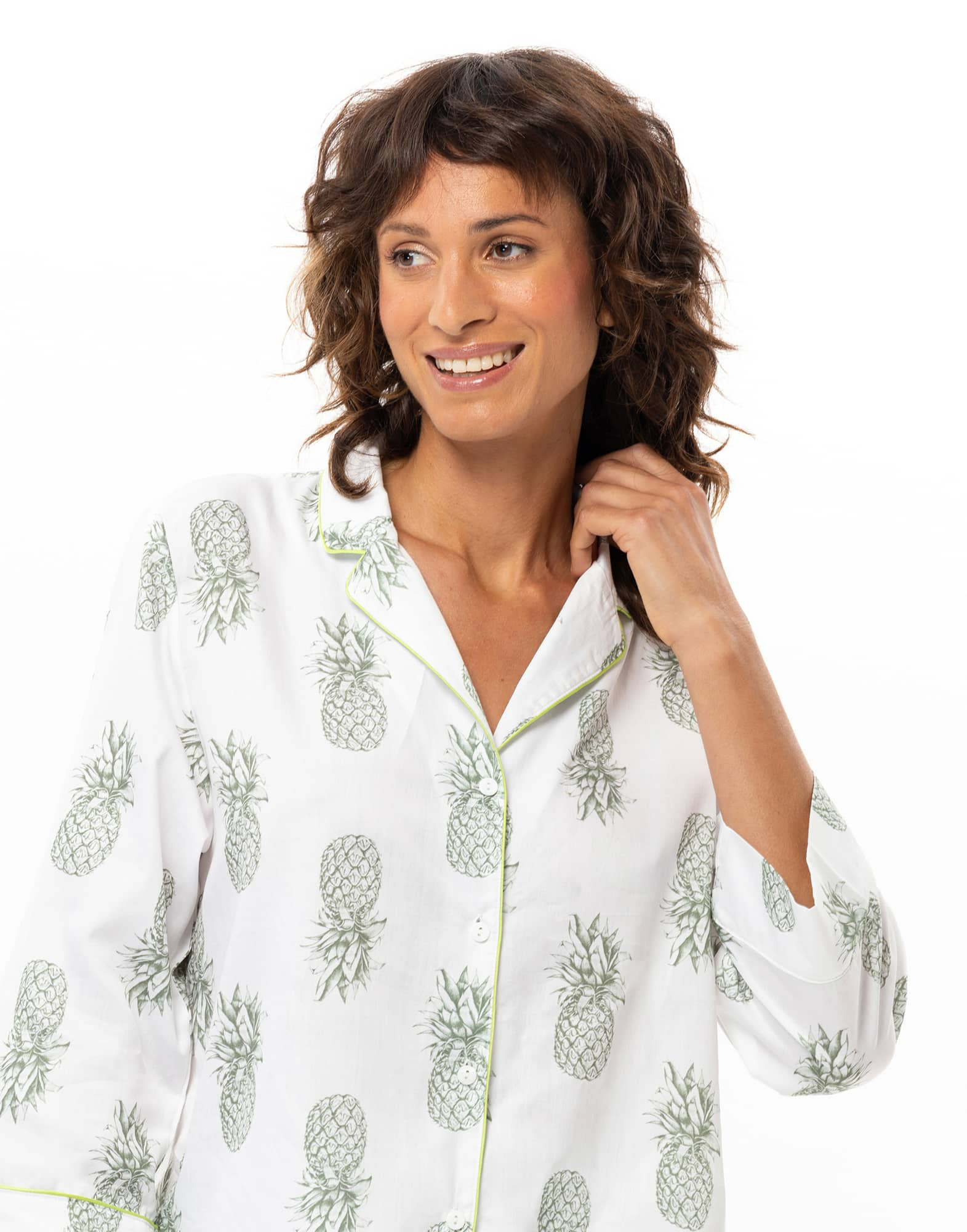 Pyjama boutonné en coton ACAPULCO Blanc / Vert
