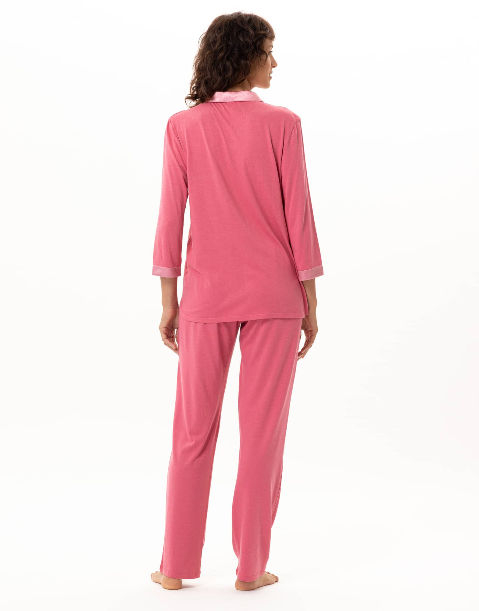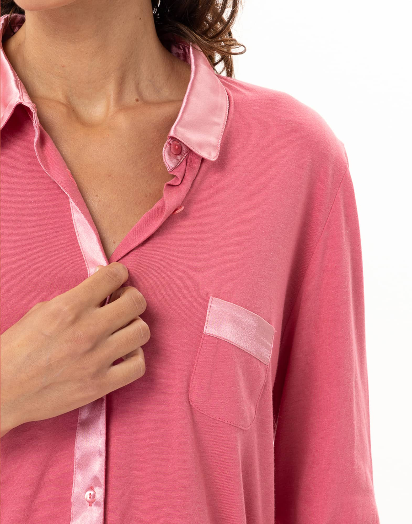- Col chemisier et patte de boutonnage également en satin, apportant plusieurs touches de lumière au pyjama
