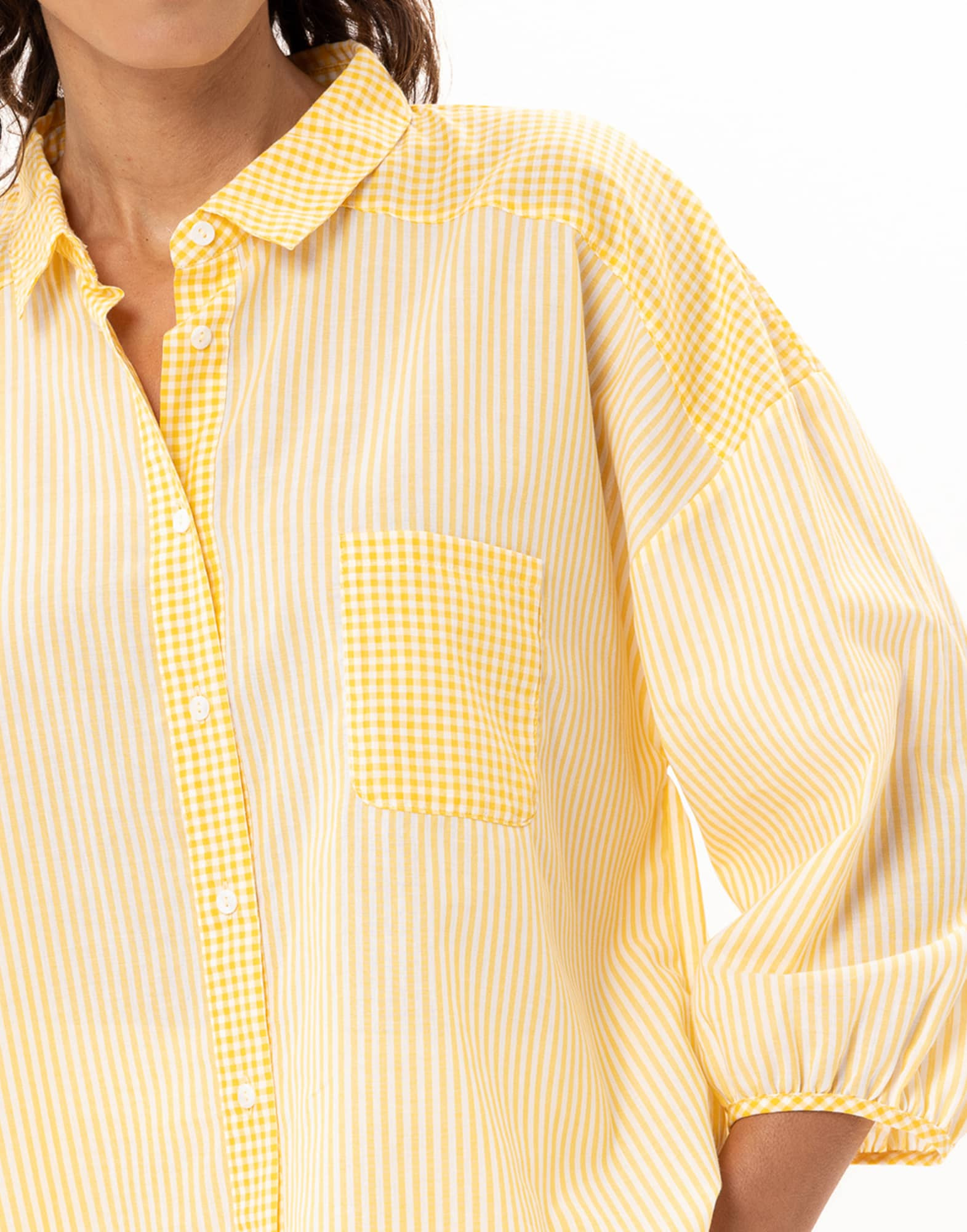 - Mix de rayures verticales et de carreaux vichy.