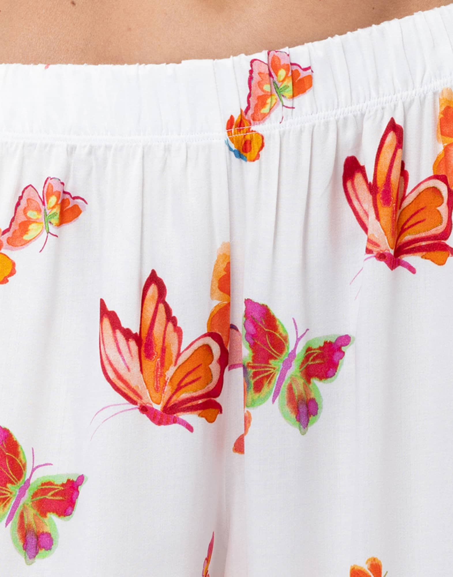 Confectionné en viscose tissée brillante, le pyjama Robinson accompagne vos nuits dès l’intersaison avec légèreté et confort. Son imprimé exclusif de papillons multicolores apporte une note fraîche et vitaminée à cette pièce hautement féminine du vestiaire de nuit.