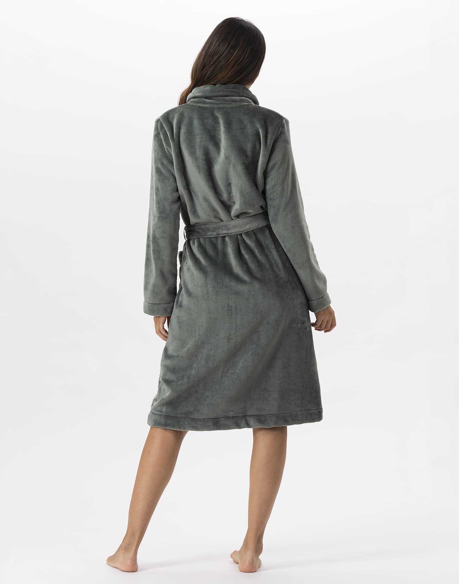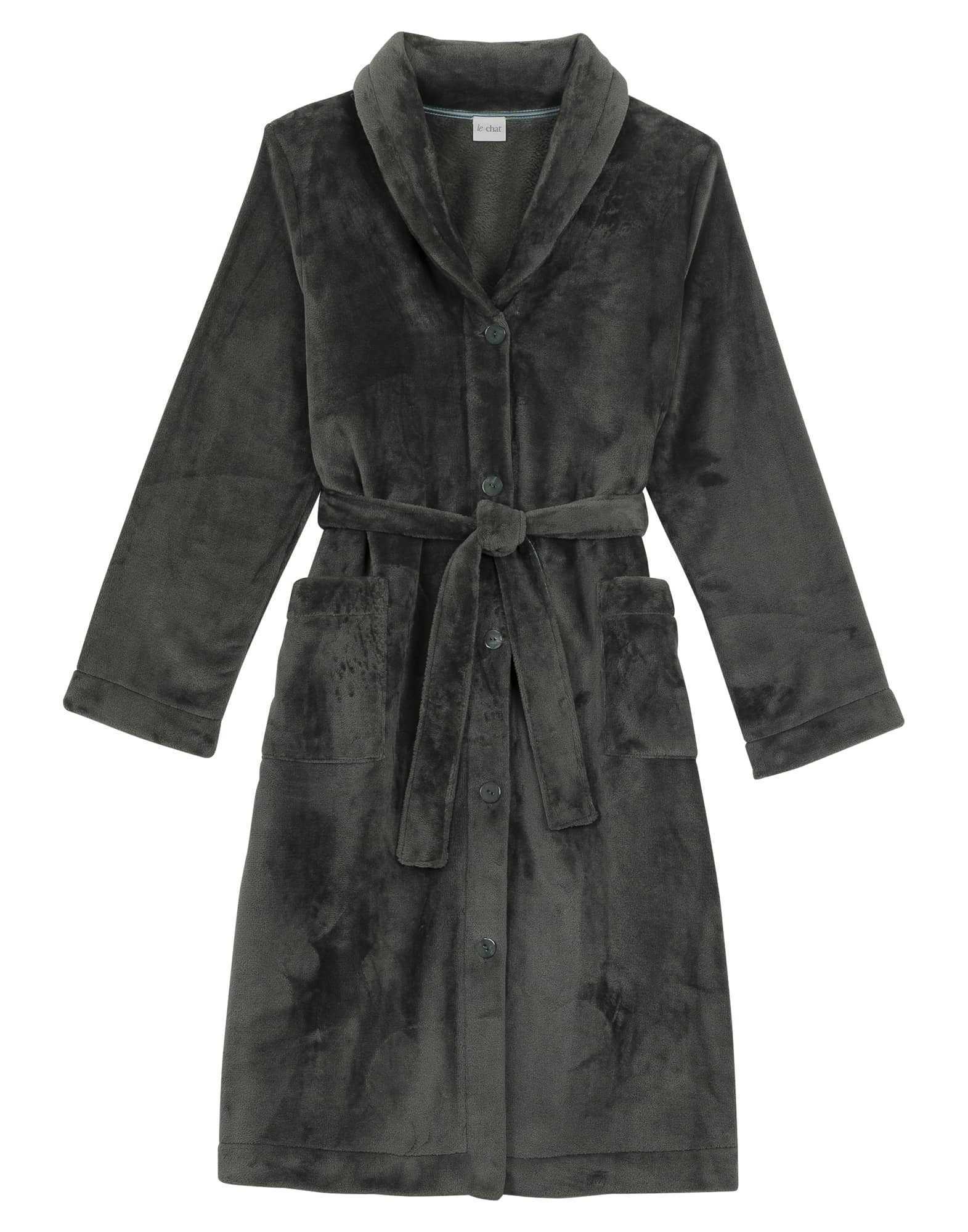 Robe de chambre boutonnée en peluche flanelle ESSENTIEL lichen
