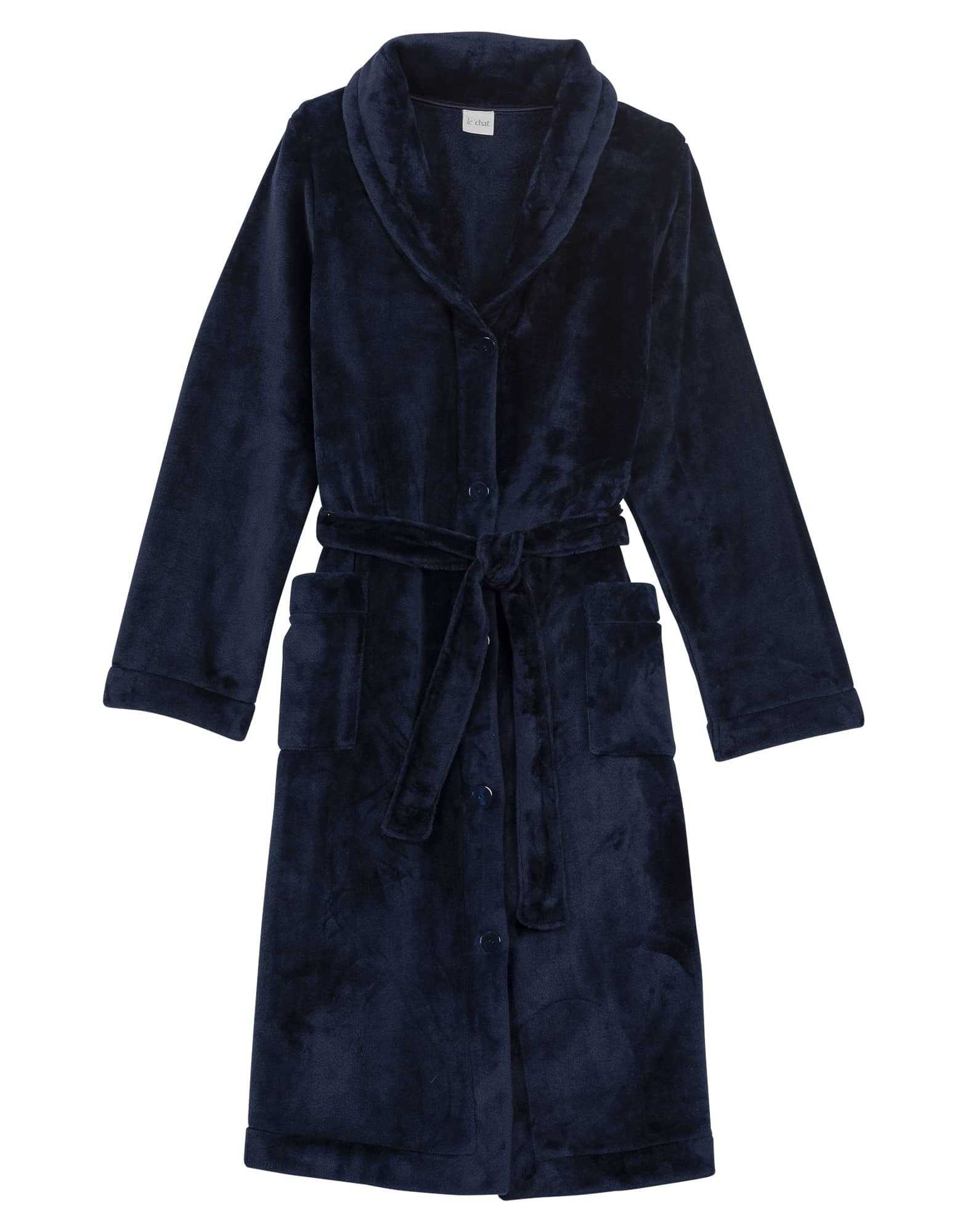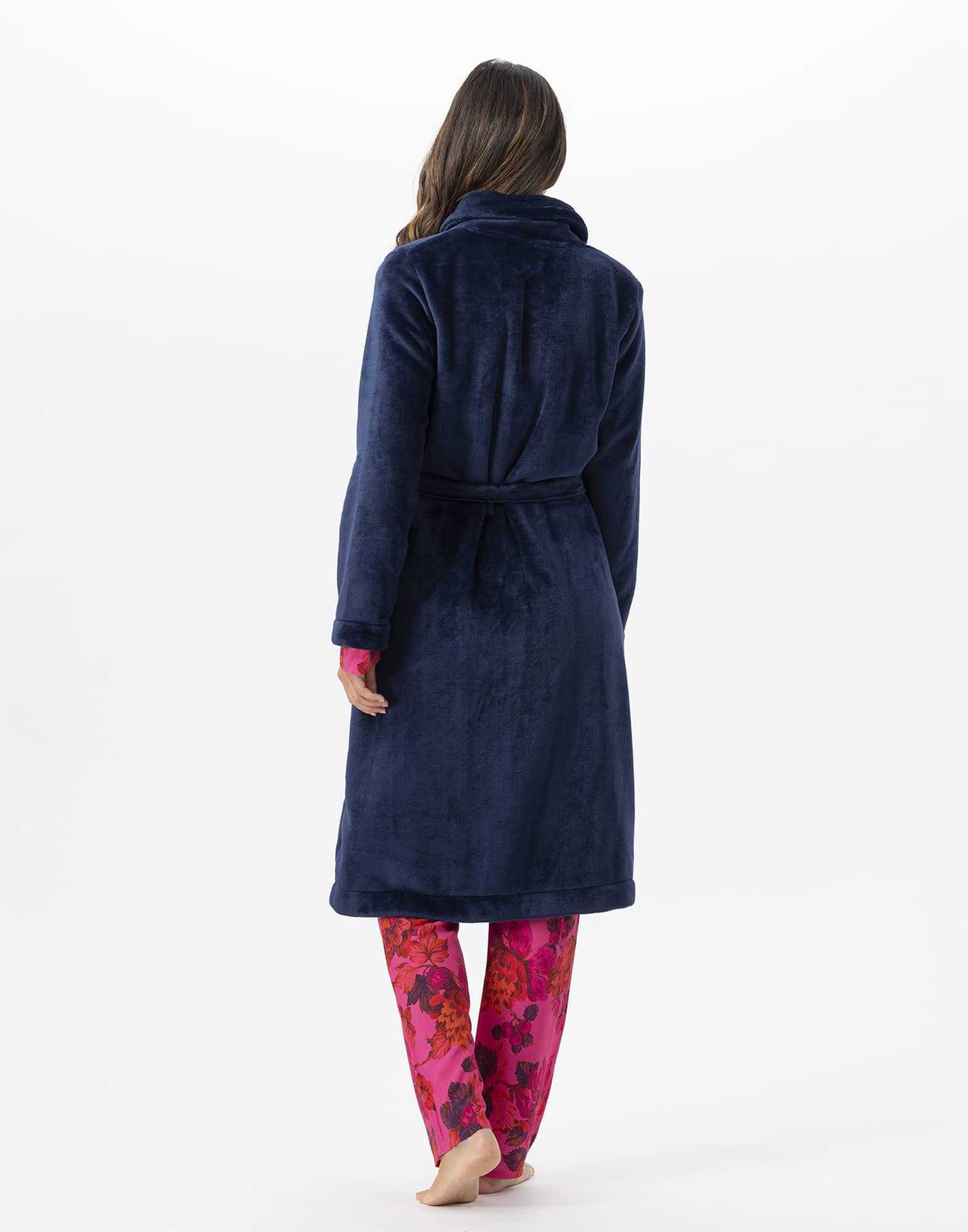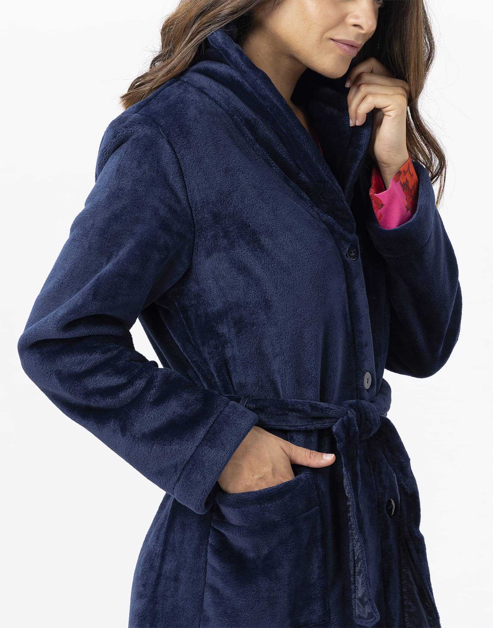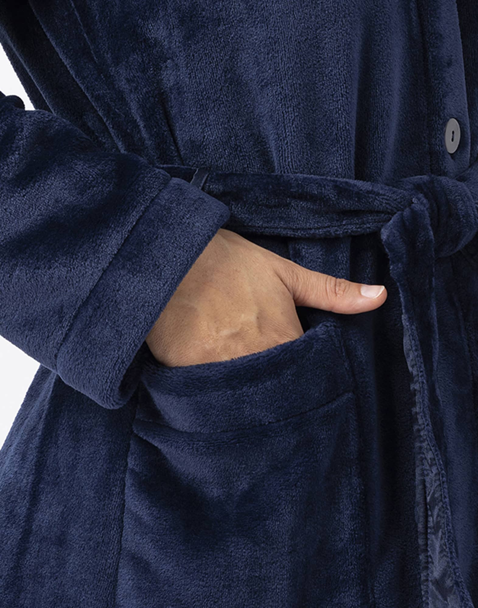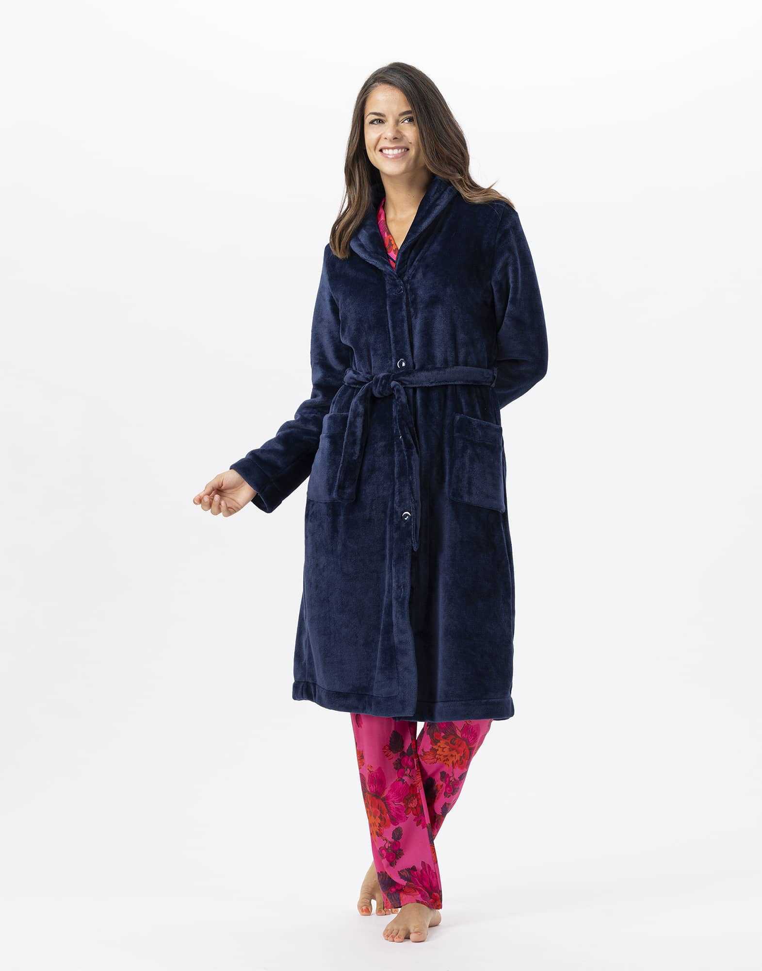 Robe de chambre boutonnée en peluche flanelle ESSENTIEL Marine