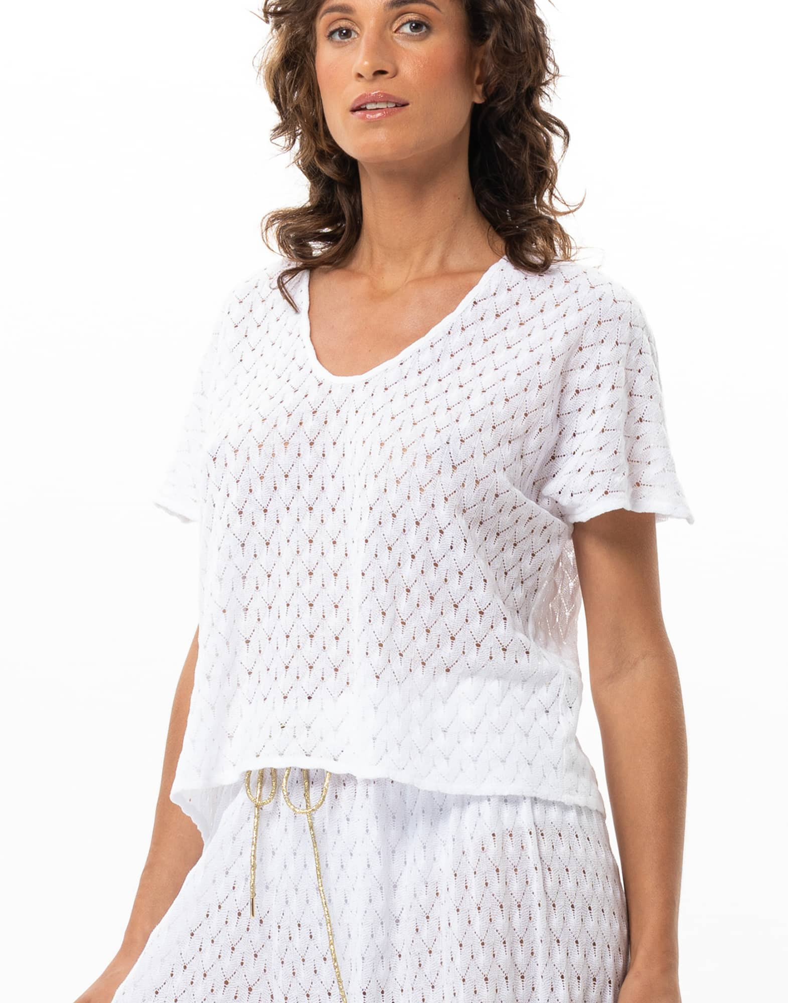 Tee-shirt en maille ajourée PAILLETTE Blanc