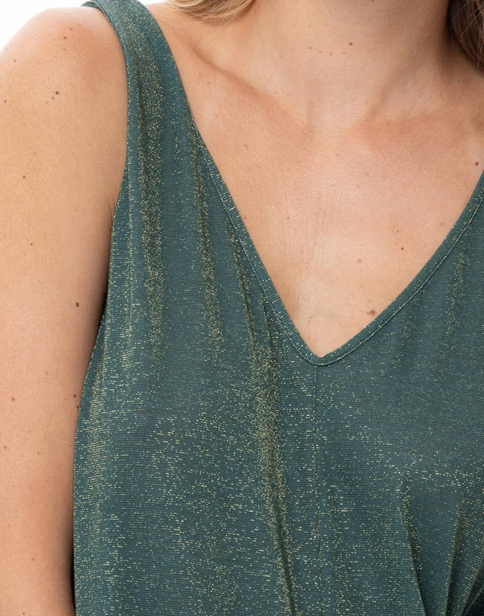 Confectionnée en Italie, sa maille se distingue par son éclat subtilement irisé apporté par de fins fils Lurex® qui captent la lumière. En abricot vitaminé ou en kaki végétal, la combinaison Coco dessine une silhouette souple et dans l’air du temps, facile à porter où que vous soyez Une pièce légère qui trouve naturellement sa place dans votre valise.