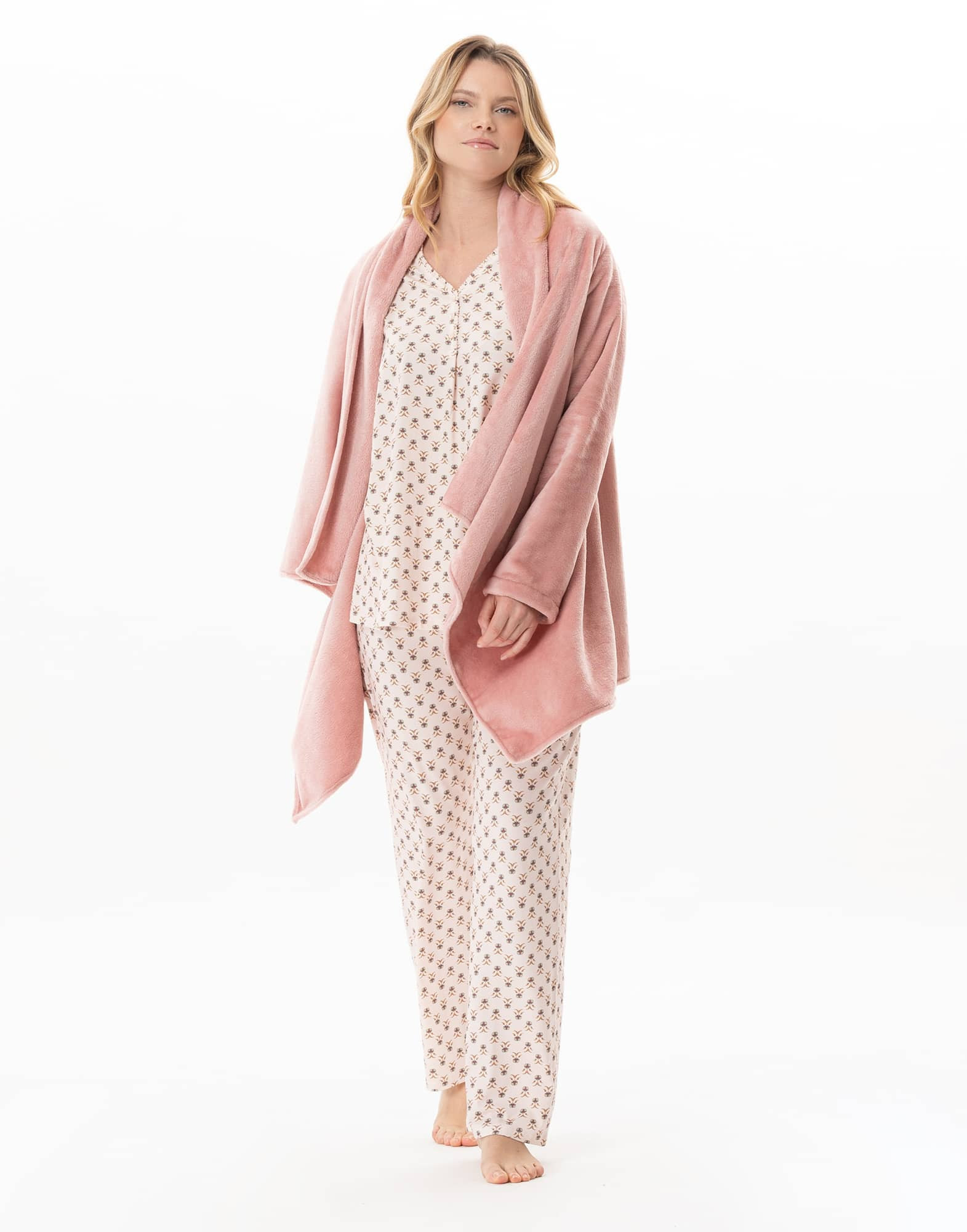 Veste asymétrique en peluche flanelle ESSENTIEL Blush