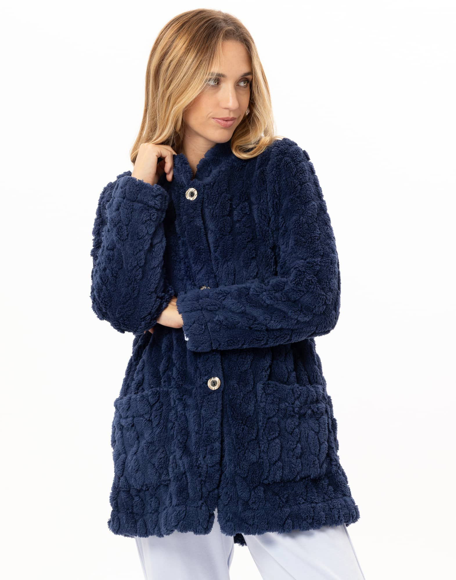 Avec son volume généreux, notre nouvelle veste toute boutonnée vous accompagne dans vos moments cocooning : du petit-déjeuner tranquille aux soirées douillettes. Marine profond, bois de rose bonne mine ou écru lumineux, elle s’associera à toutes vos tenues nightwear ou homewear.